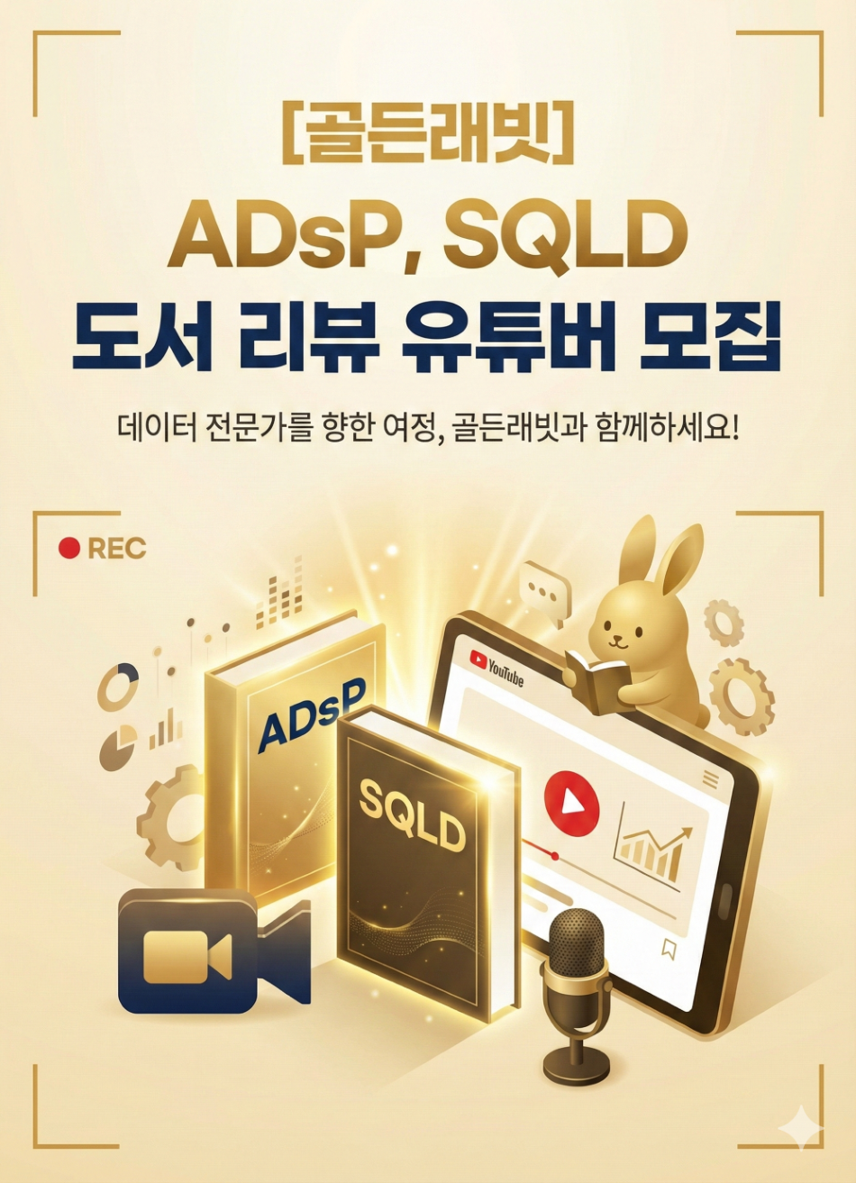 - 도서 협찬: 영상 제작에 필요한 실물 도서(ADsP, SQLD) 지원