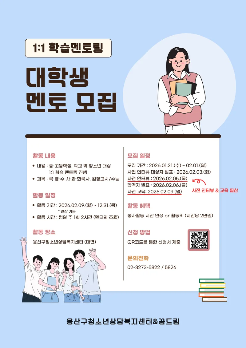 2026년 용산구청소년상담복지센터&꿈드림과 함께할 멘토를 모집합니다.
