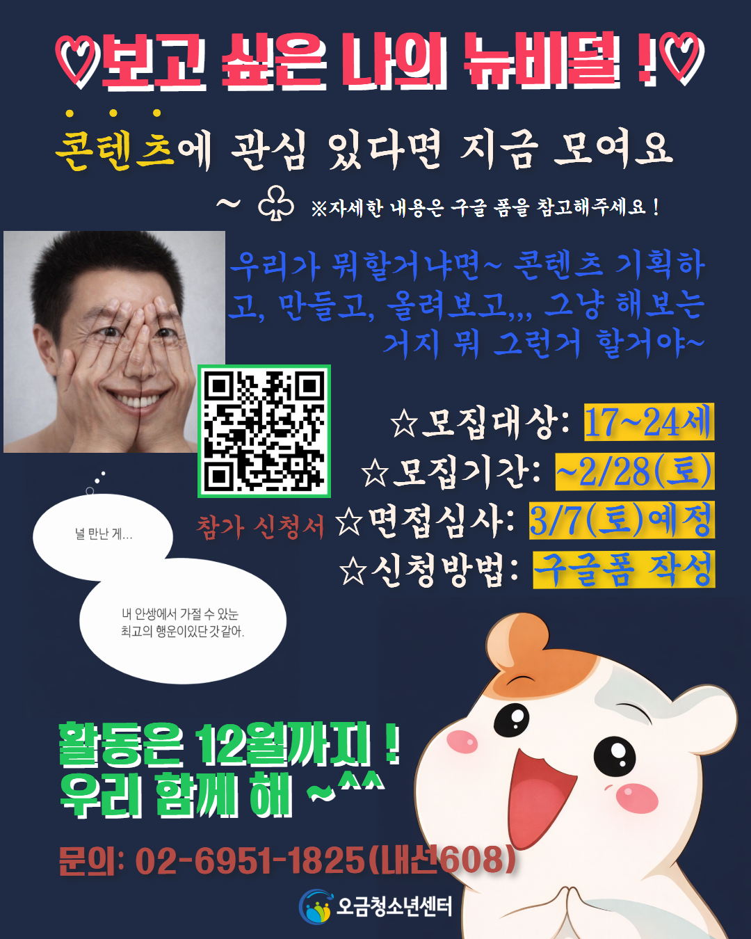 콘텐츠에 관심이 있거나 자신의 이야기를 미디어를 통해 전달해볼 수 있는 기회를 만나보세요 !