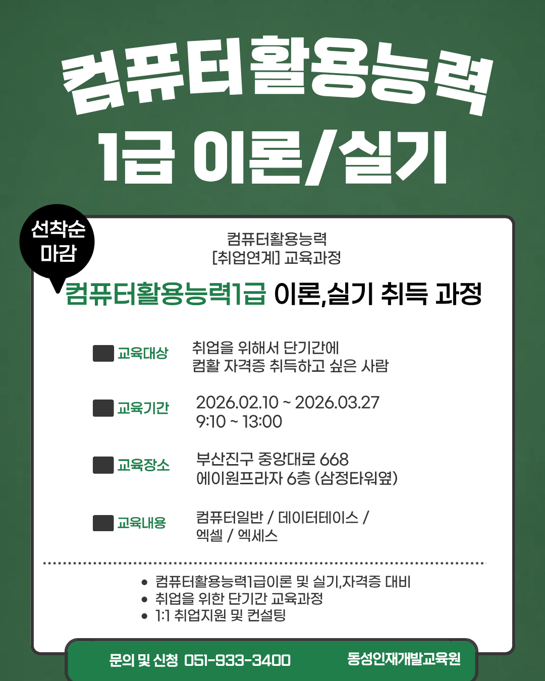 컴퓨터활용능력 1급 (이론+실기) 완벽 대비 과정