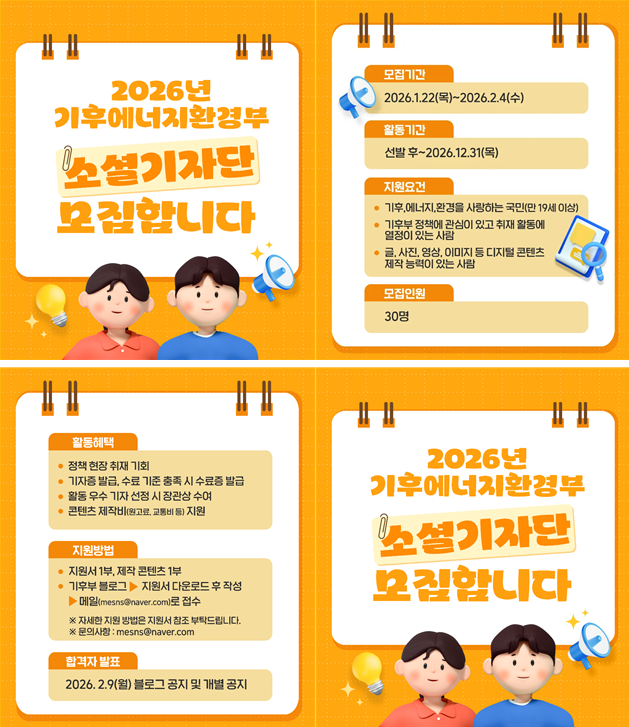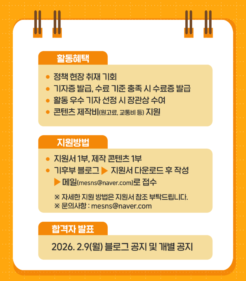 * 제출 시 전자우편 제목 : 2026년 기후부 소셜기자단_ㅇㅇㅇ(지원자 이름)