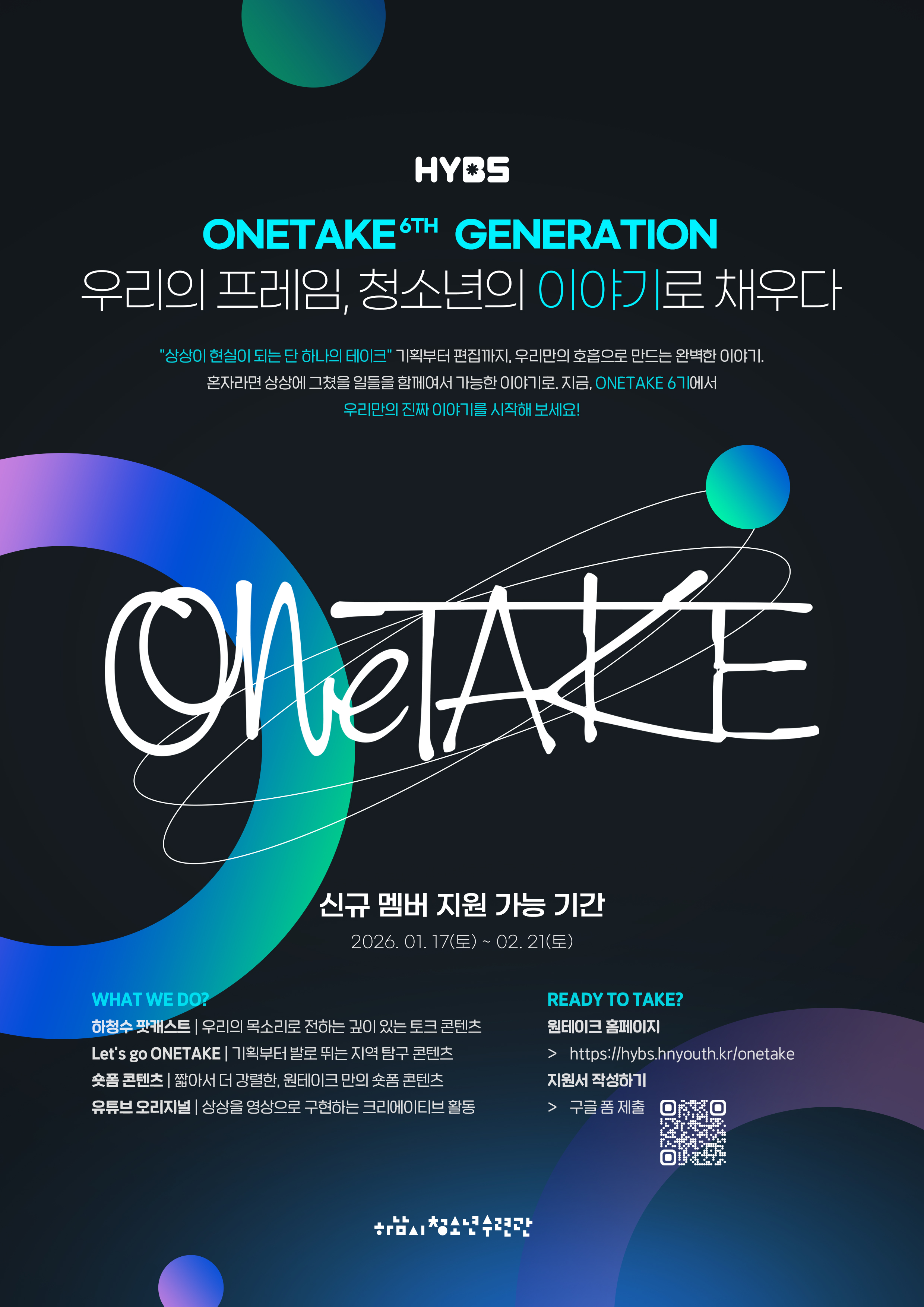 콘텐츠 제작에 관심이 있다면 HYBS 원테이크에서 함께 해요!