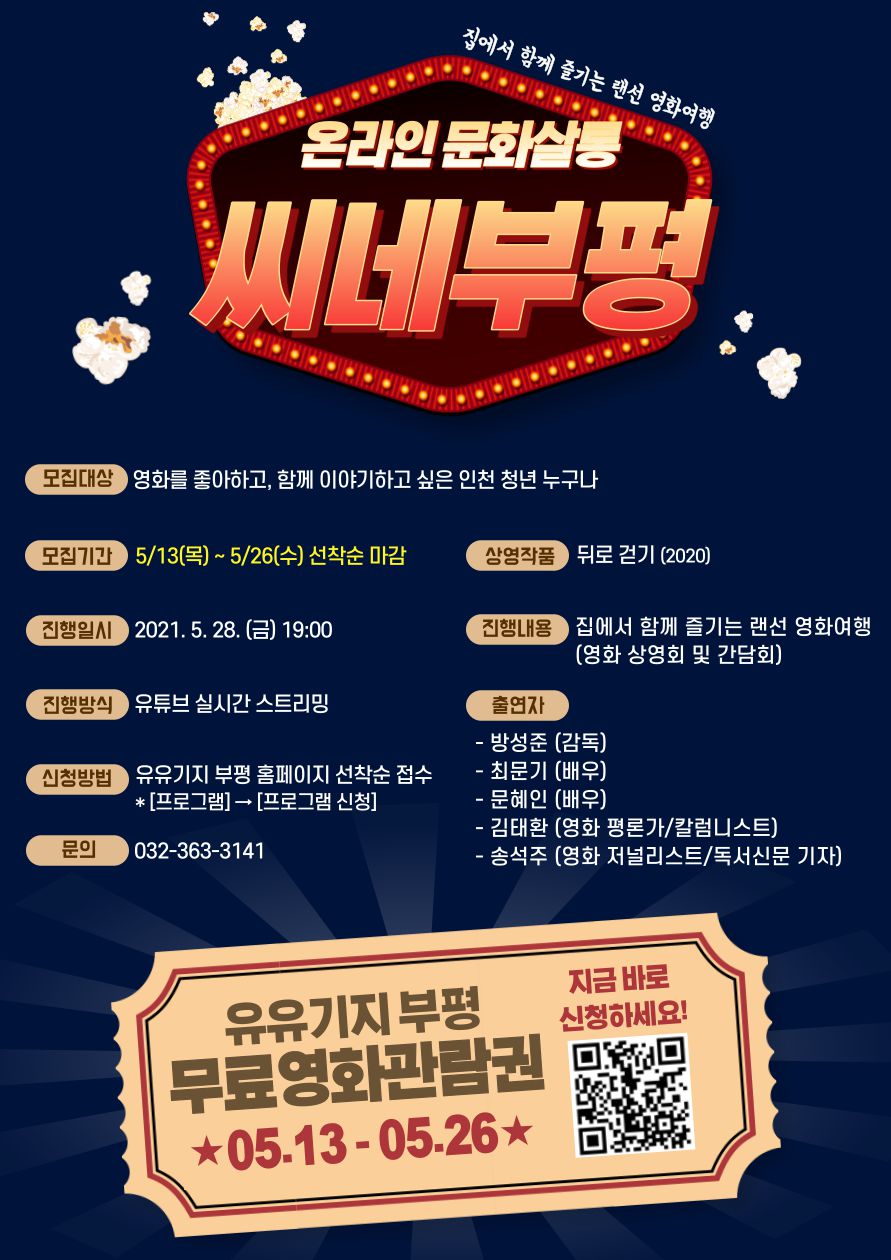 5월 28일 금요일 19시에 유튜브로 실시간 중계되는 <씨네부평>에 여러분을 초대할게요~