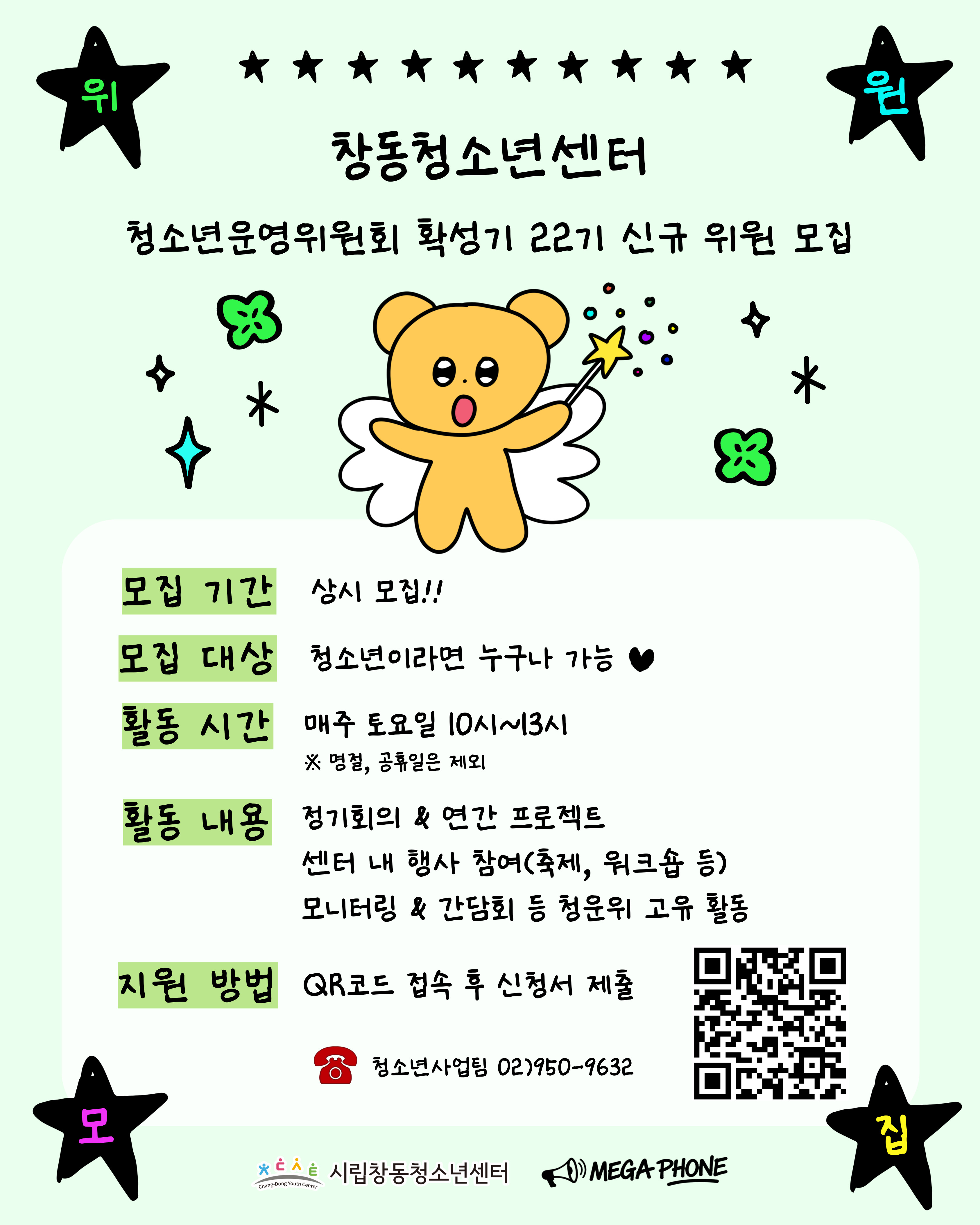 청소년운영위원회 📢확성기📢 22기 신규 위원 모집 중!!