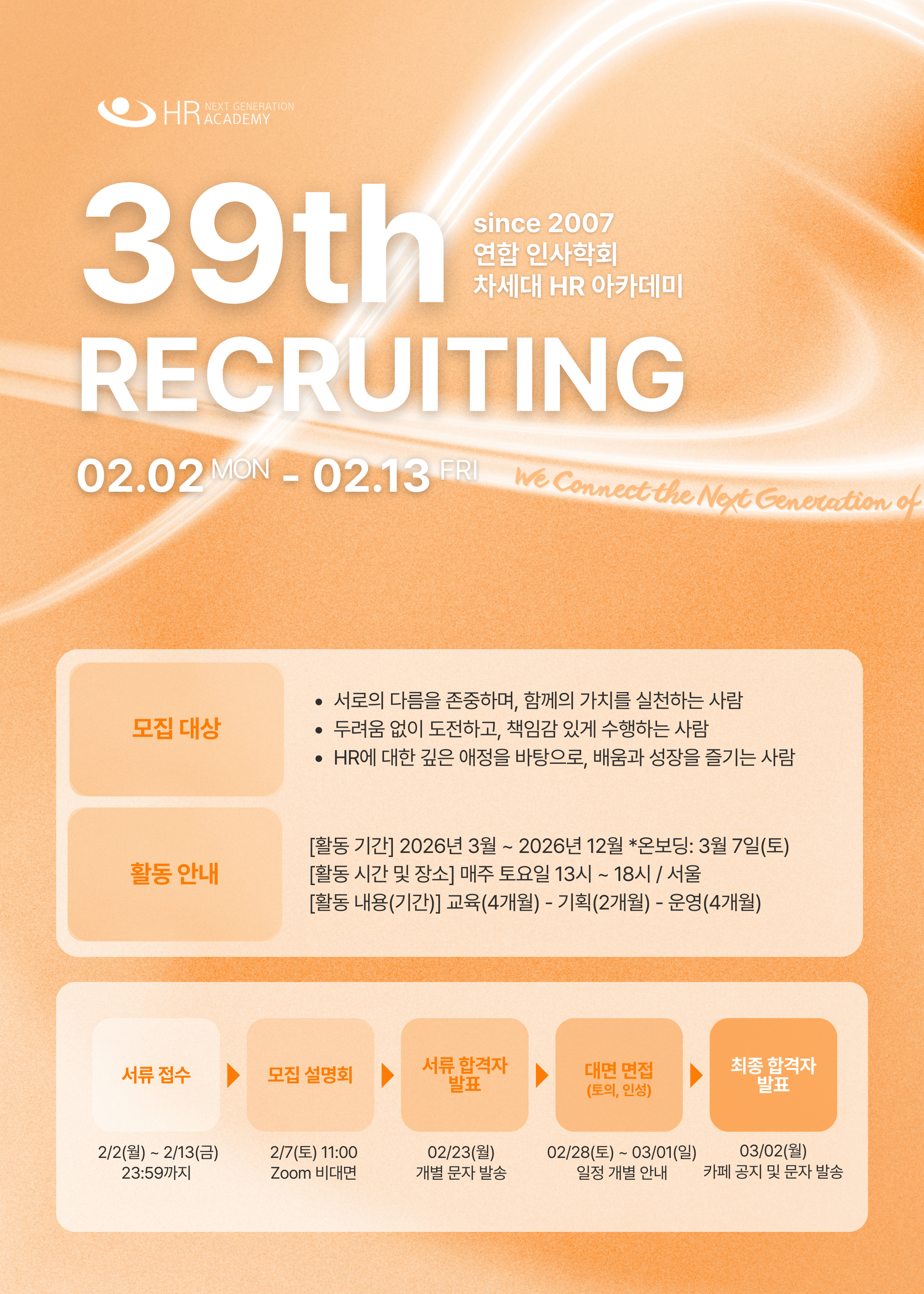 ๐งก[์ฐํฉ ์ธ์ฌํํ] ์ฐจ์ธ๋ HR ์์นด๋ฐ๋ฏธ(since 2007) 39๊ธฐ๋ฅผ ๋ชจ์งํฉ๋๋ค! (~2/13 ๊ธ 23:59)๐งก