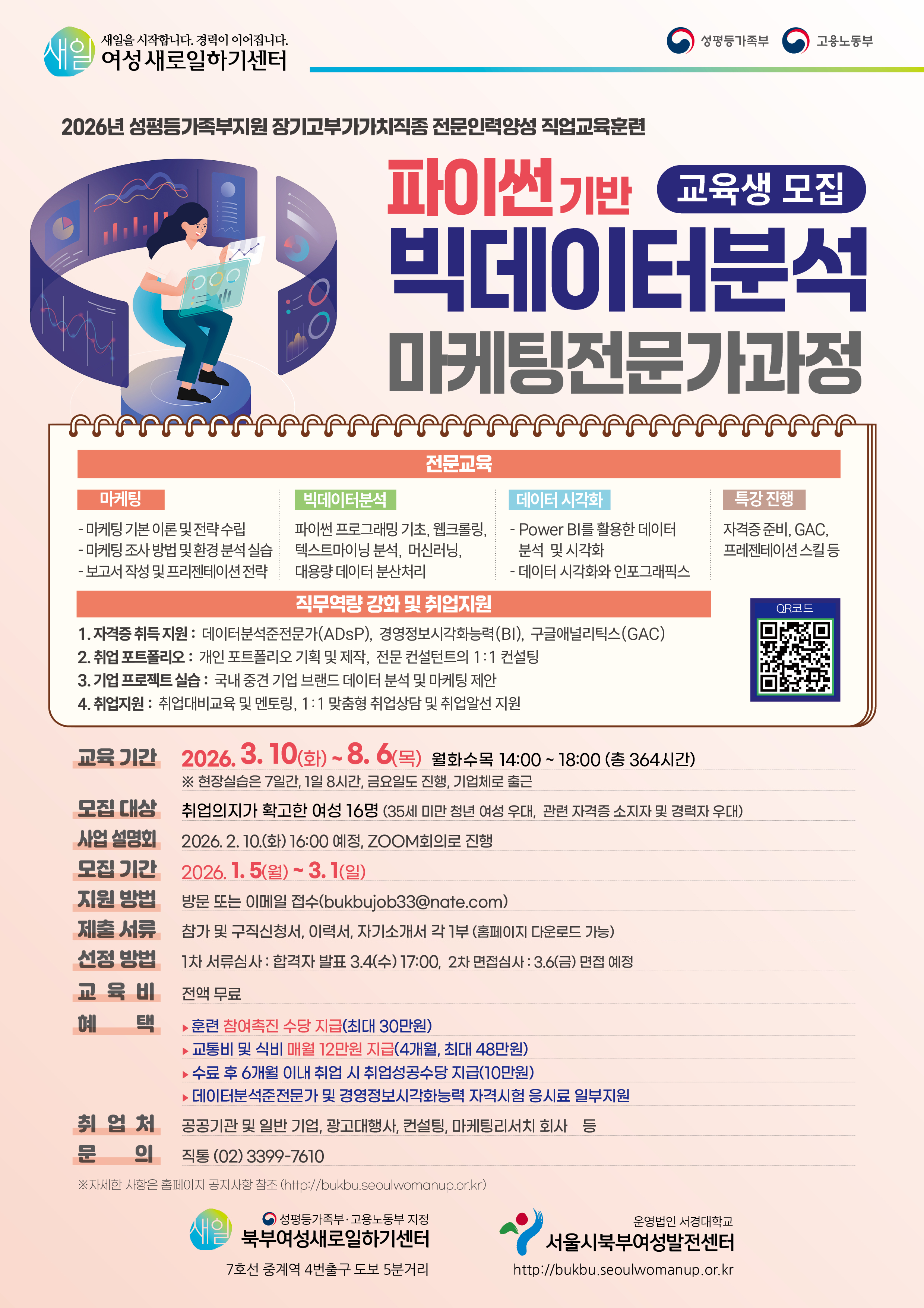 [성평등가족부_참여촉진수당 지급]파이썬기반 빅데이터분석마케팅전문가 교육생 모집