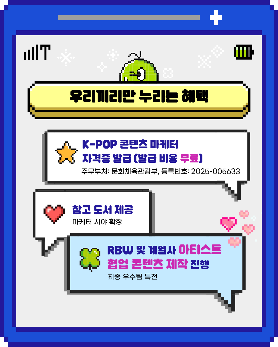 #RBW #RBW교육 #KPOP마케팅 #콘텐츠마케터 #민간자격증 #엔터취업 #엔터테인먼트마케팅 #마케팅실무 #콘텐츠기획 #RBWEDUCAMPUS