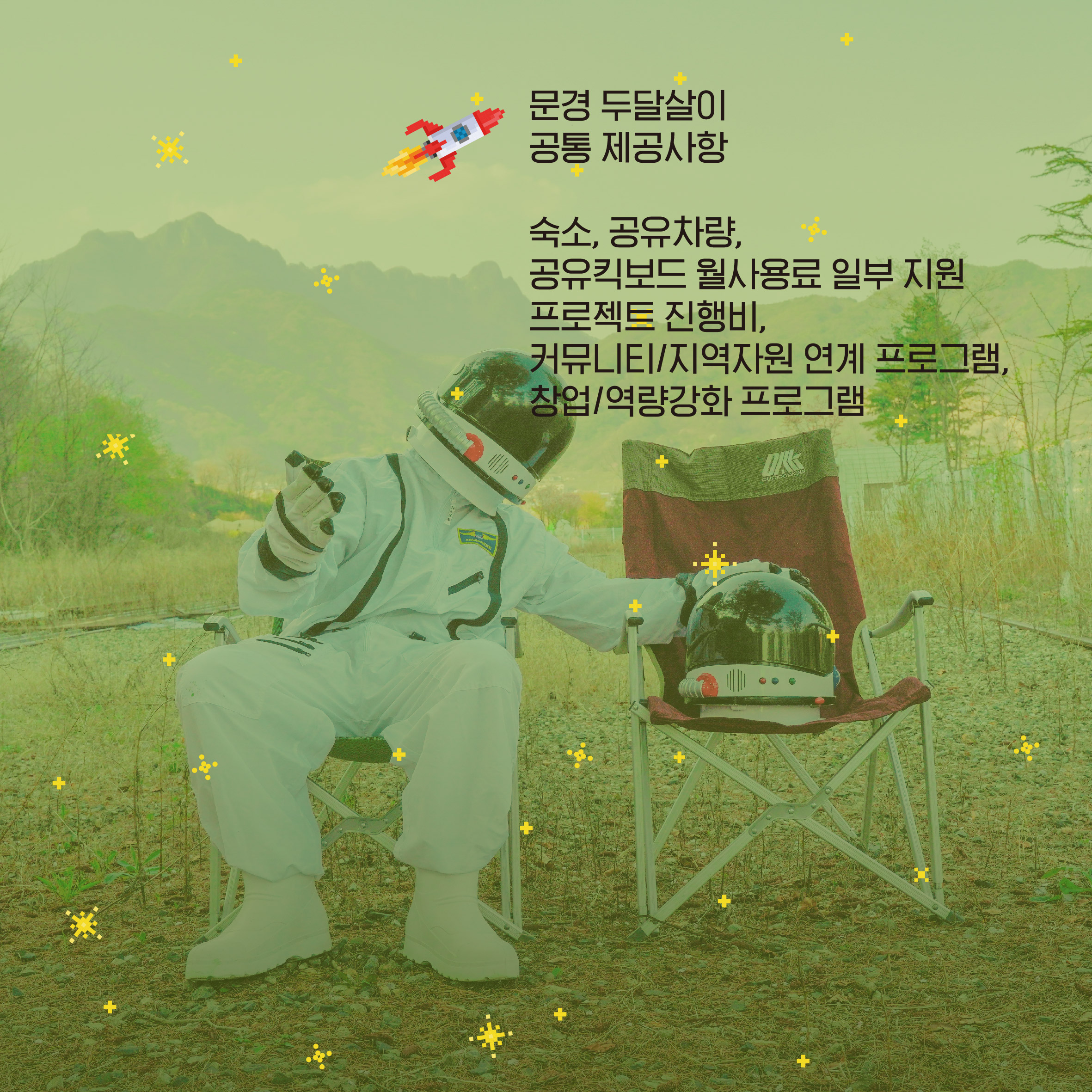- 공통제공사항: 웰컴키트, 61박 62일 머물 숙소, 프로젝트비 지원,
