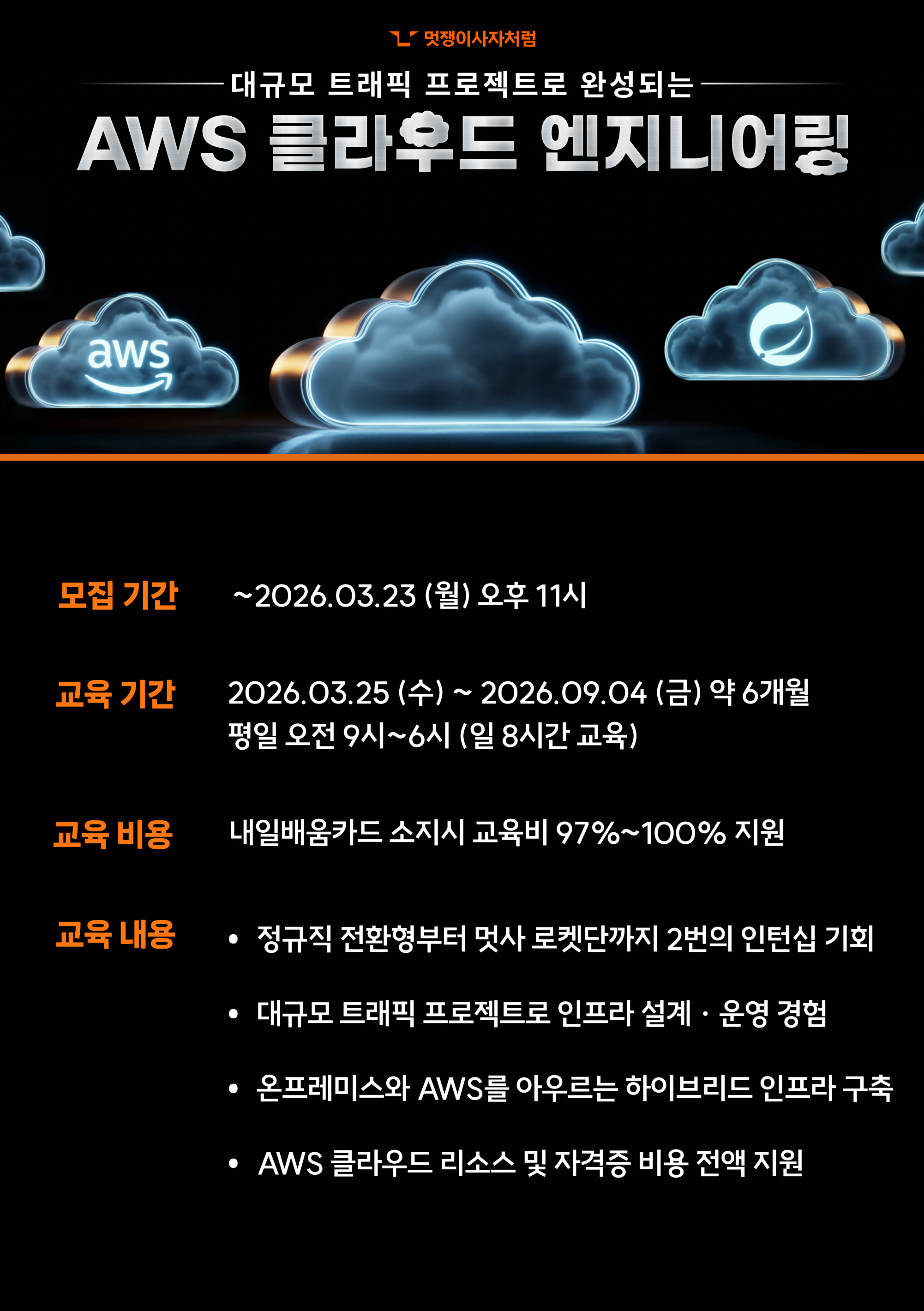 대규모 트래픽 운영 경험을 만드는 클라우드 엔지니어 양성 국비지원 IT 부트캠프