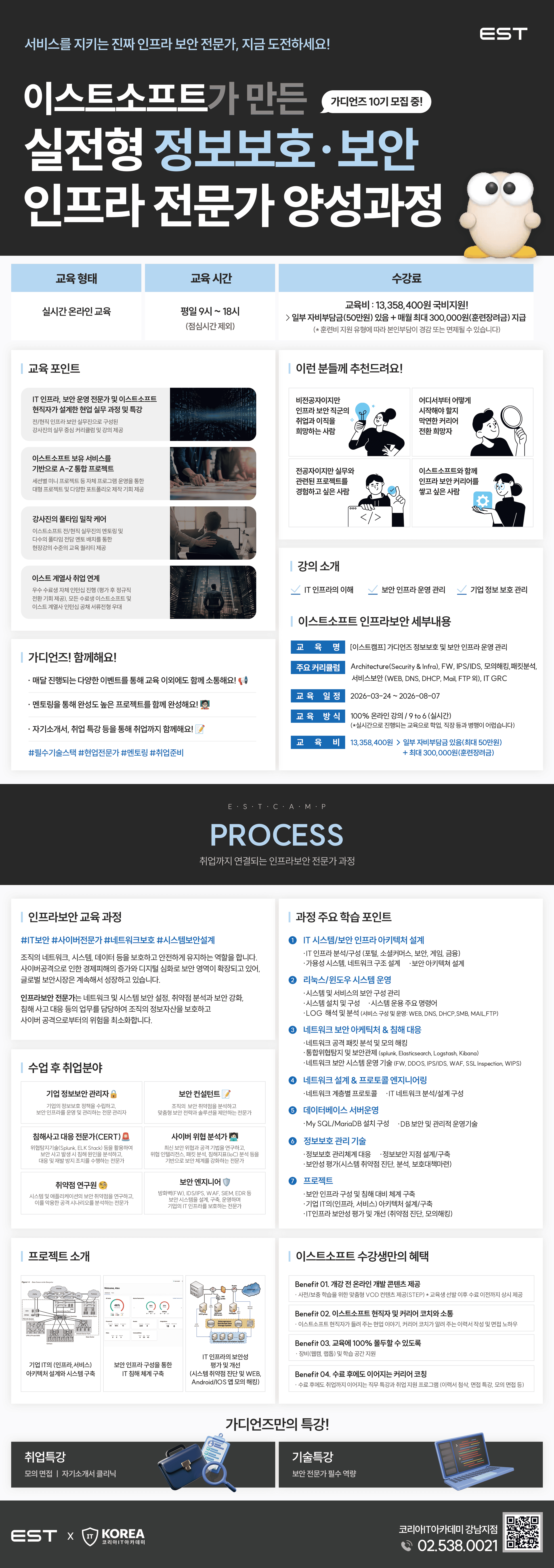 해당 과정은 네트워크 및 시스템 보안 설정, 취약점 분석과 보안 강화, 침해 사고 대응 등의 업무를 담당하여 조직의 정보자산을 보호하고 사이버 공격으로부터의 위험을 최소화하는 인재를 양성합니다.