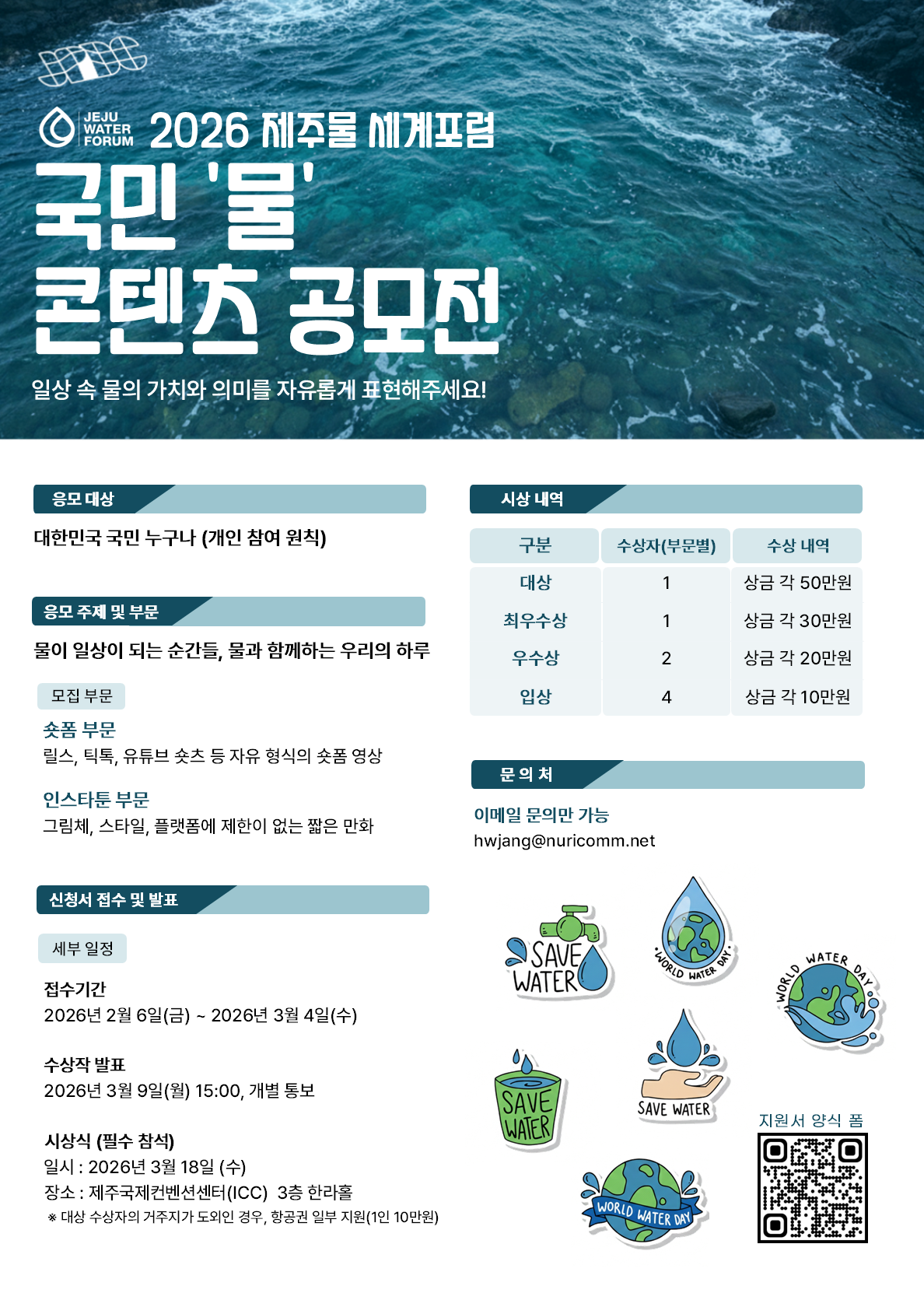 • 공모명 : 2026 제주물 세계포럼 국민 '물' 콘텐츠 공모전