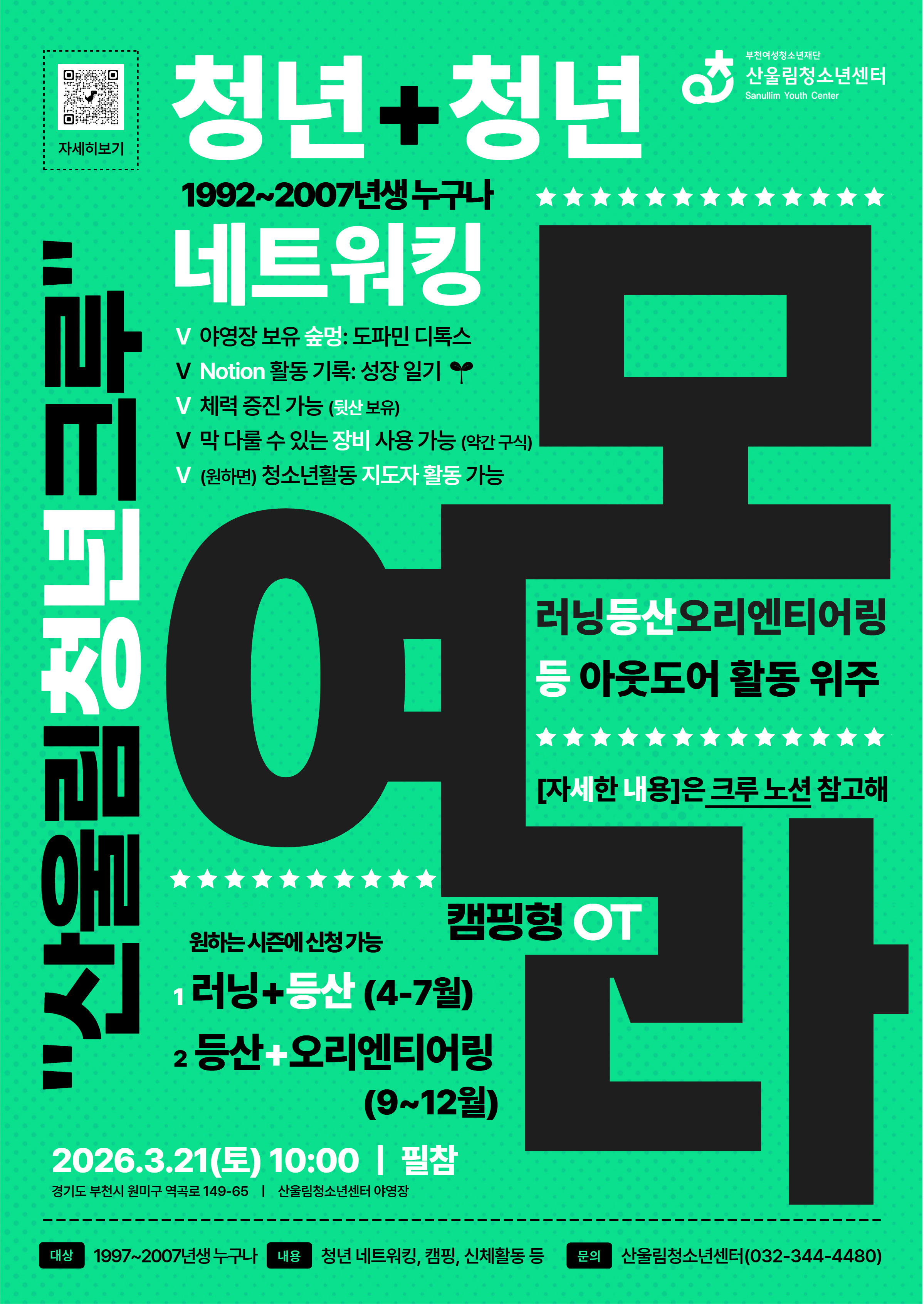OT 일시: 2026년 3월 21일(토) 10:00 (캠핑형 OT로 진행!)