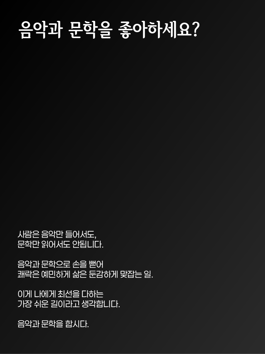 음악과 문학을 너무 사랑하는 사람도, 이제 좋아하기 시작한 사람도 전부 괜찮습니다.