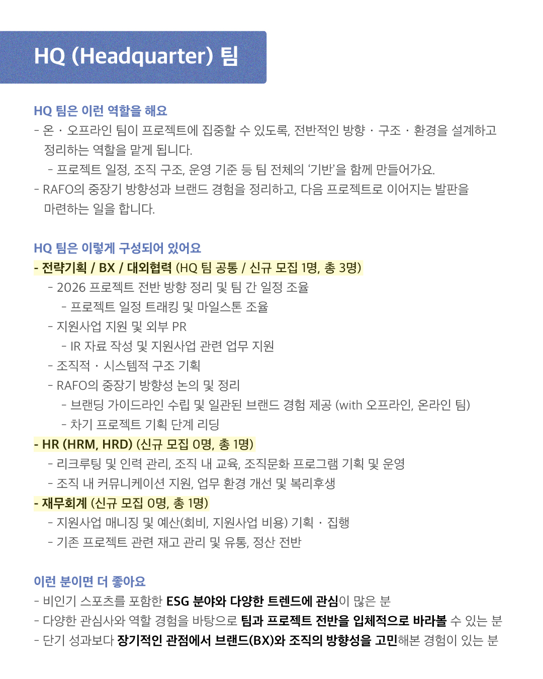 HQ 팀 (기획·운영·대외협력)