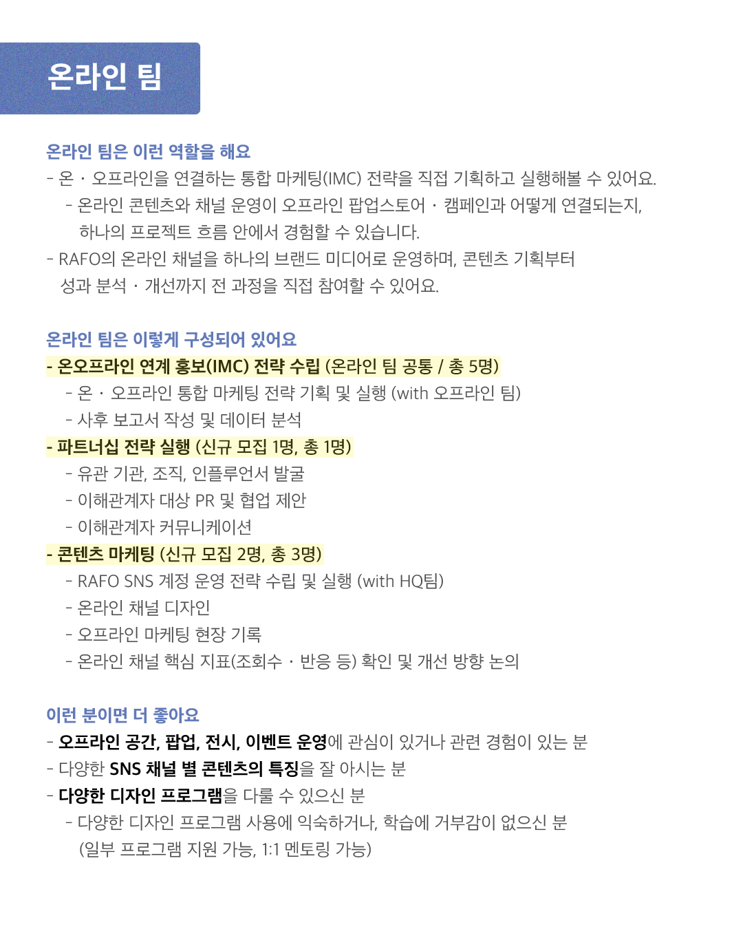 온라인 팀 (IMC·영상·콘텐츠 제작)