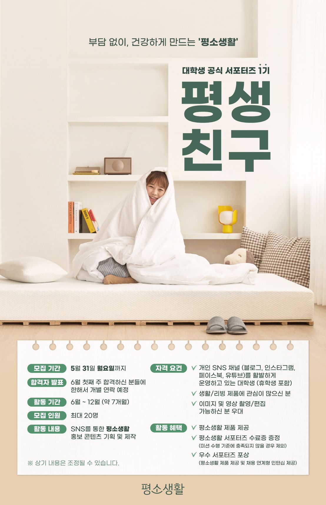 평소생활 대학생 공식 서포터즈 '평생친구' 1기 모집
