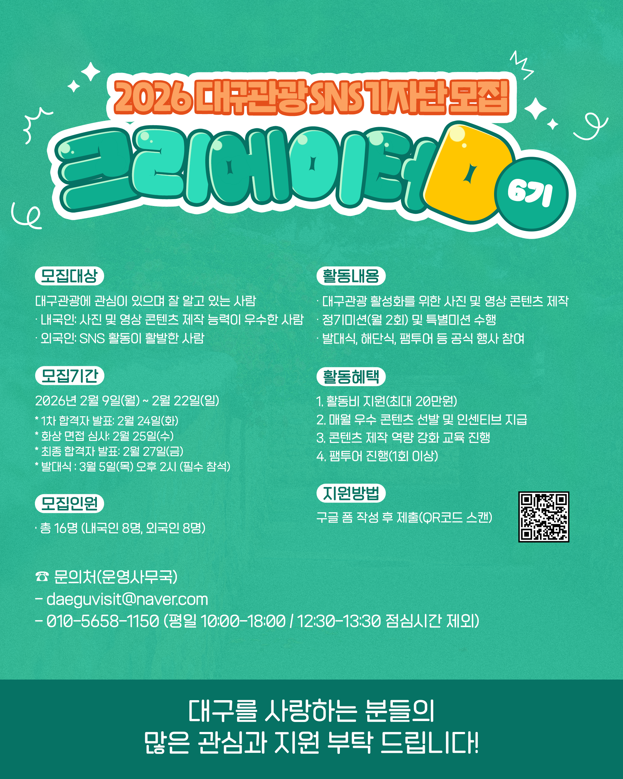 📢 2026 대구관광 SNS 기자단 크리에이터D 6기 모집