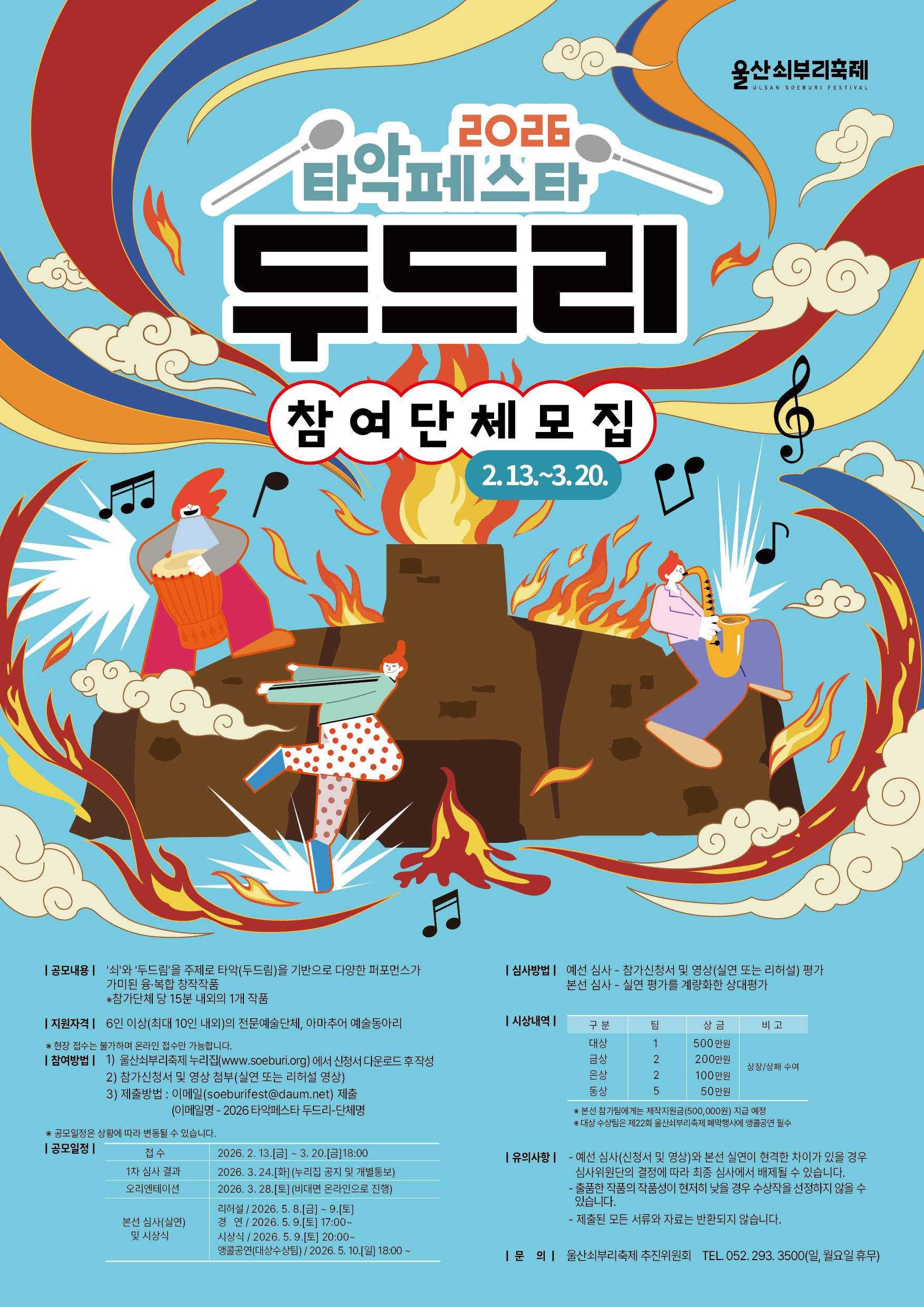 2026 울산쇠부리축제의 대표 프로그램인 ‘타악페스타 두드리’에 참여할 공연단체를 모집합니다!