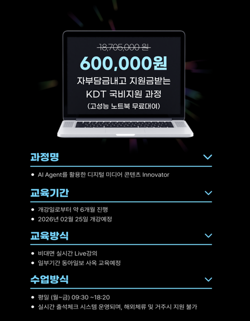※ 2026년부터는 KDT교육도 자비부담금 발생됩니다.
