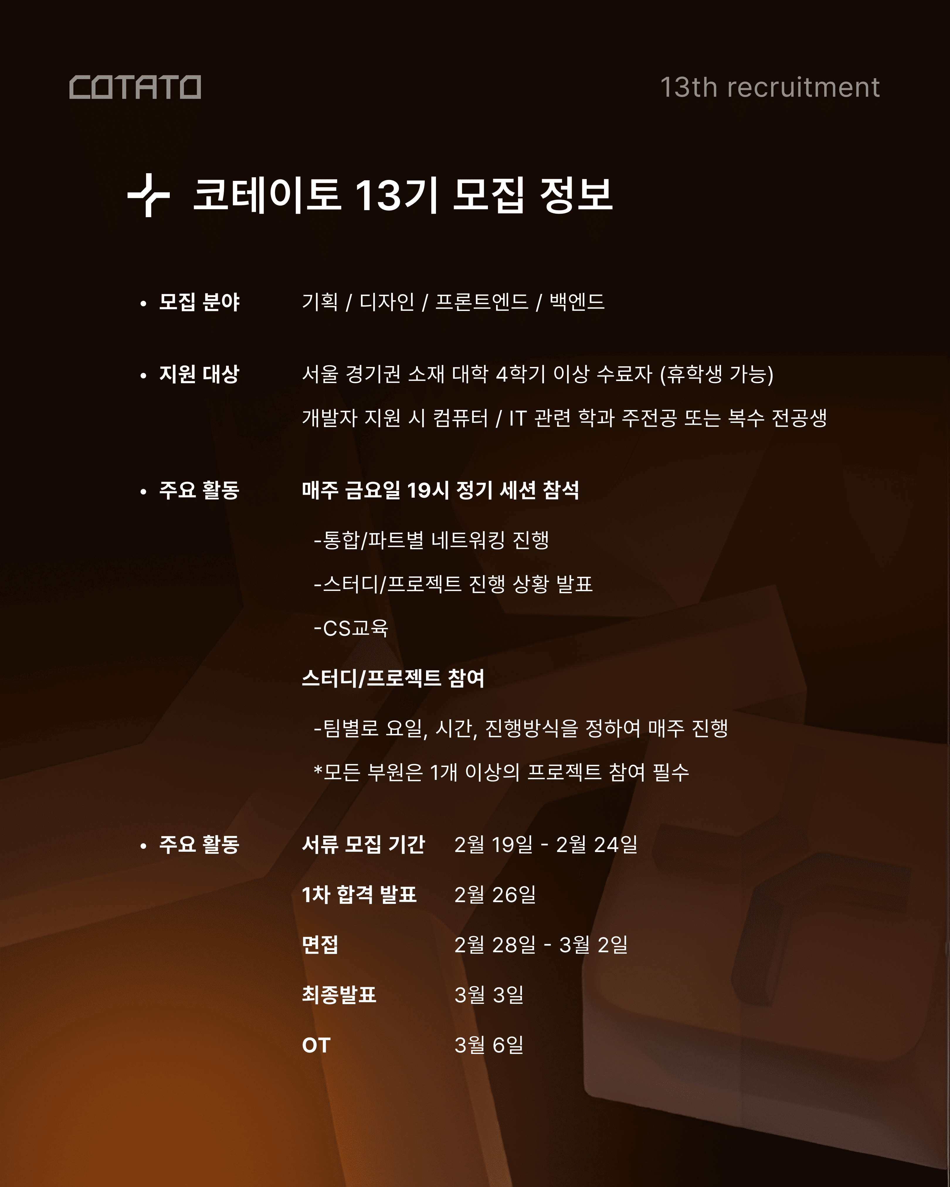 코테이토 리크루트 페이지(recruit.cotato.kr)에서 지원하기!