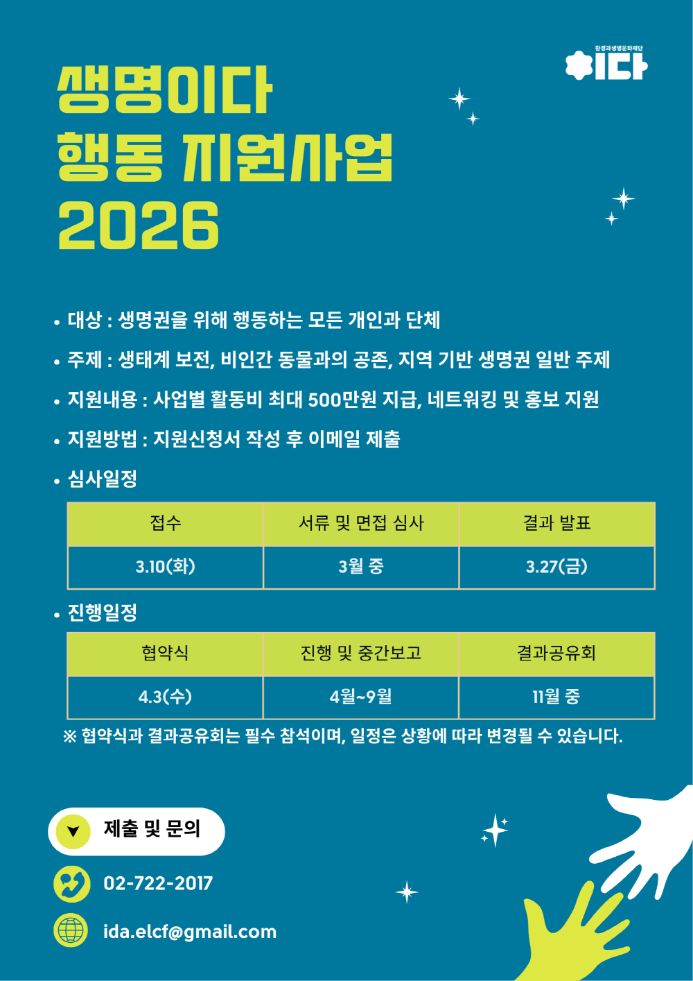 전화 : 02-722-2017 (환경과생명문화재단 이다 사무국)
