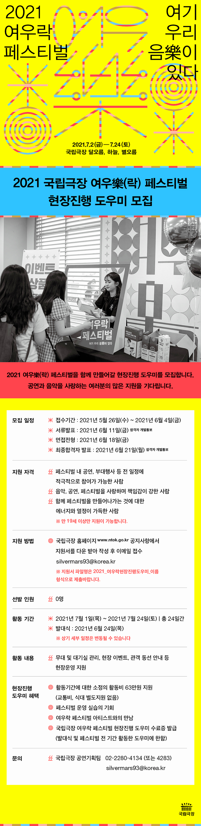 2021 국립극장 여우樂(락) 페스티벌 현장진행 도우미 모집
