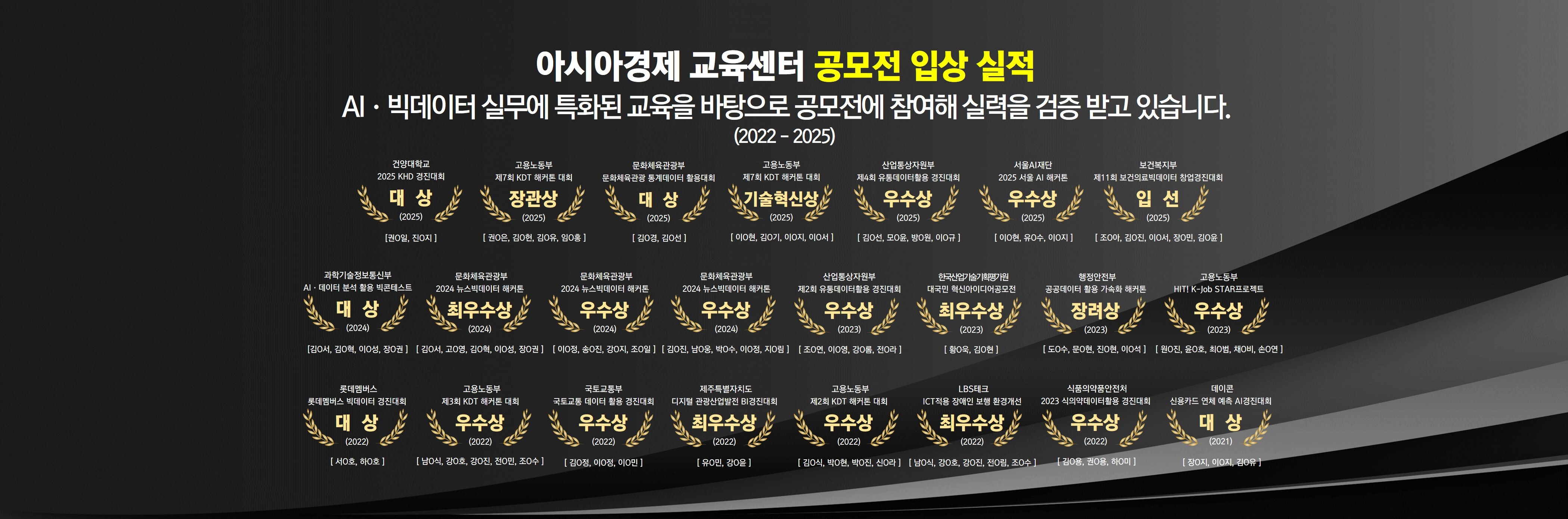 - 훈련생 대외 공모전 수상 실적(2022-2025년 총 23건)