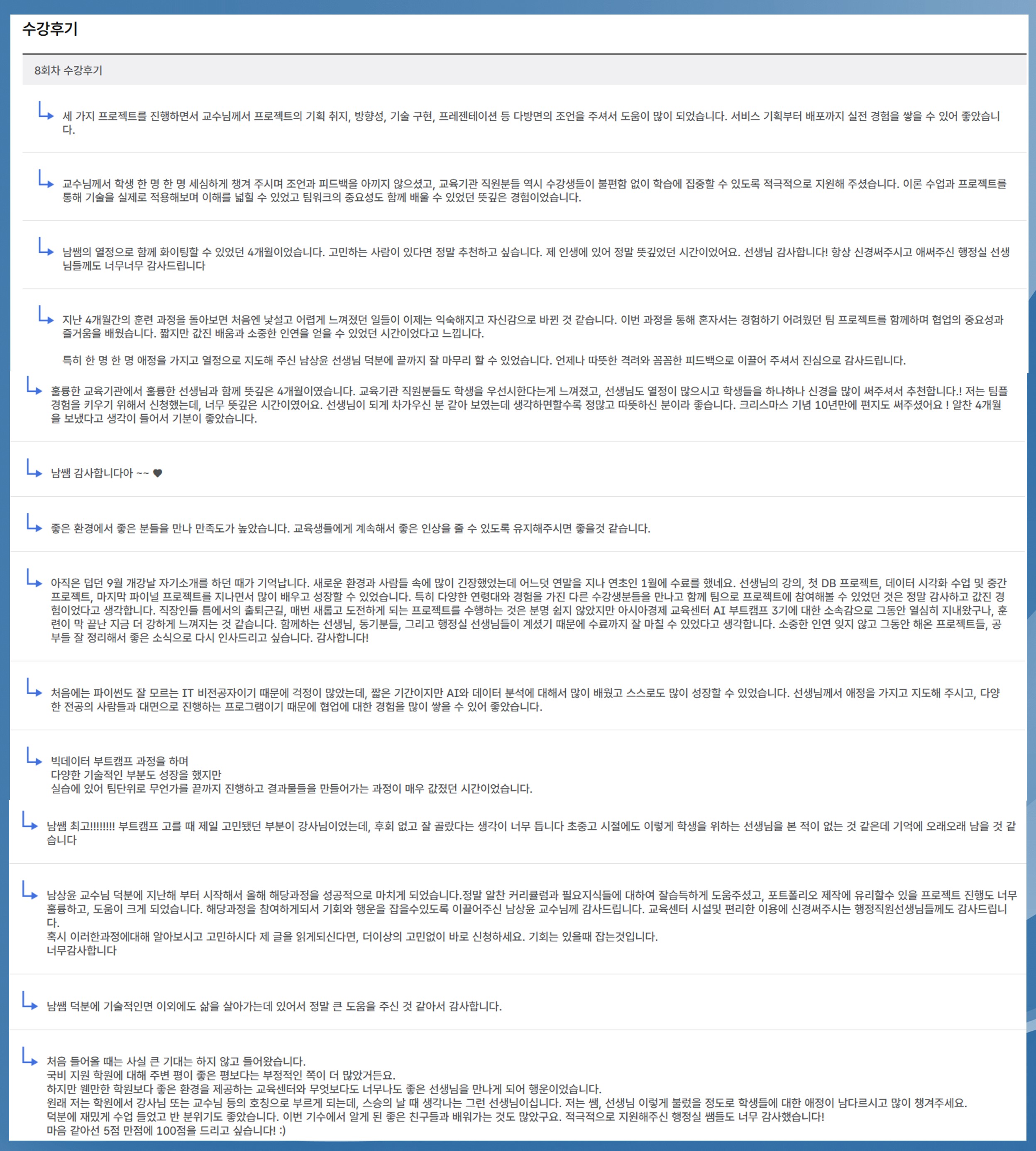 (직전 기수, 고용24에 수료생이 직접 남긴 만족도 평가 및 후기)