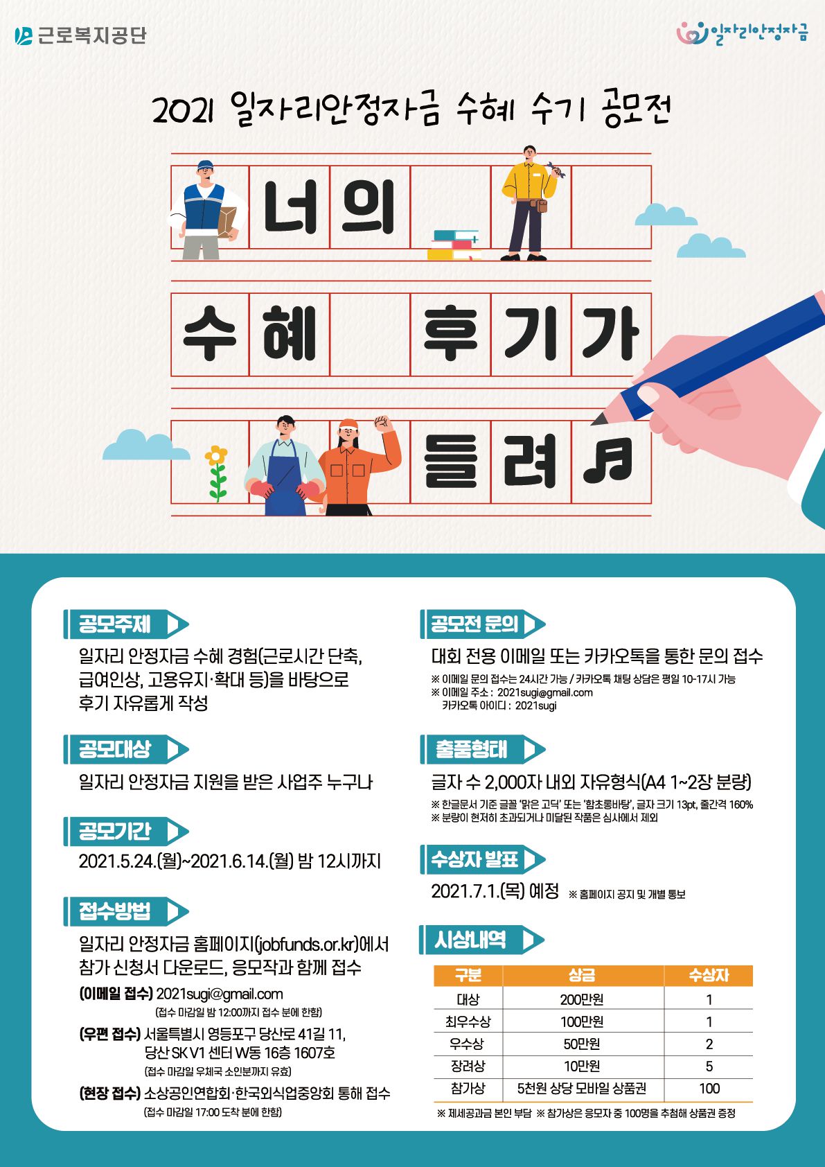 2021 일자리 안정자금 수혜 수기 공모전