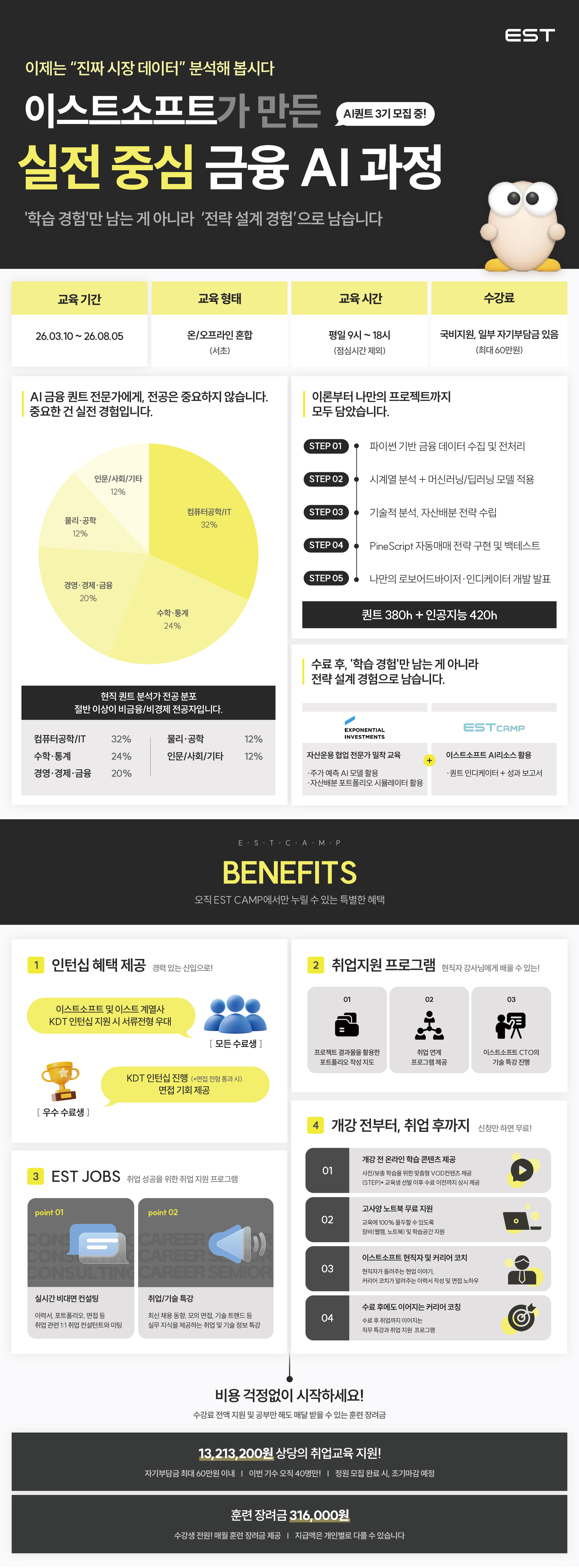 - 1400만원 상당 교육비 지원 (자비부담금 최대 50만원 발생)