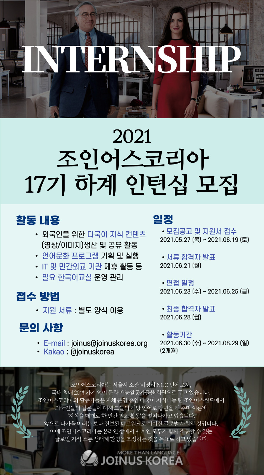 [대외활동] 조인어스코리아 17기 하계 인턴십 모집