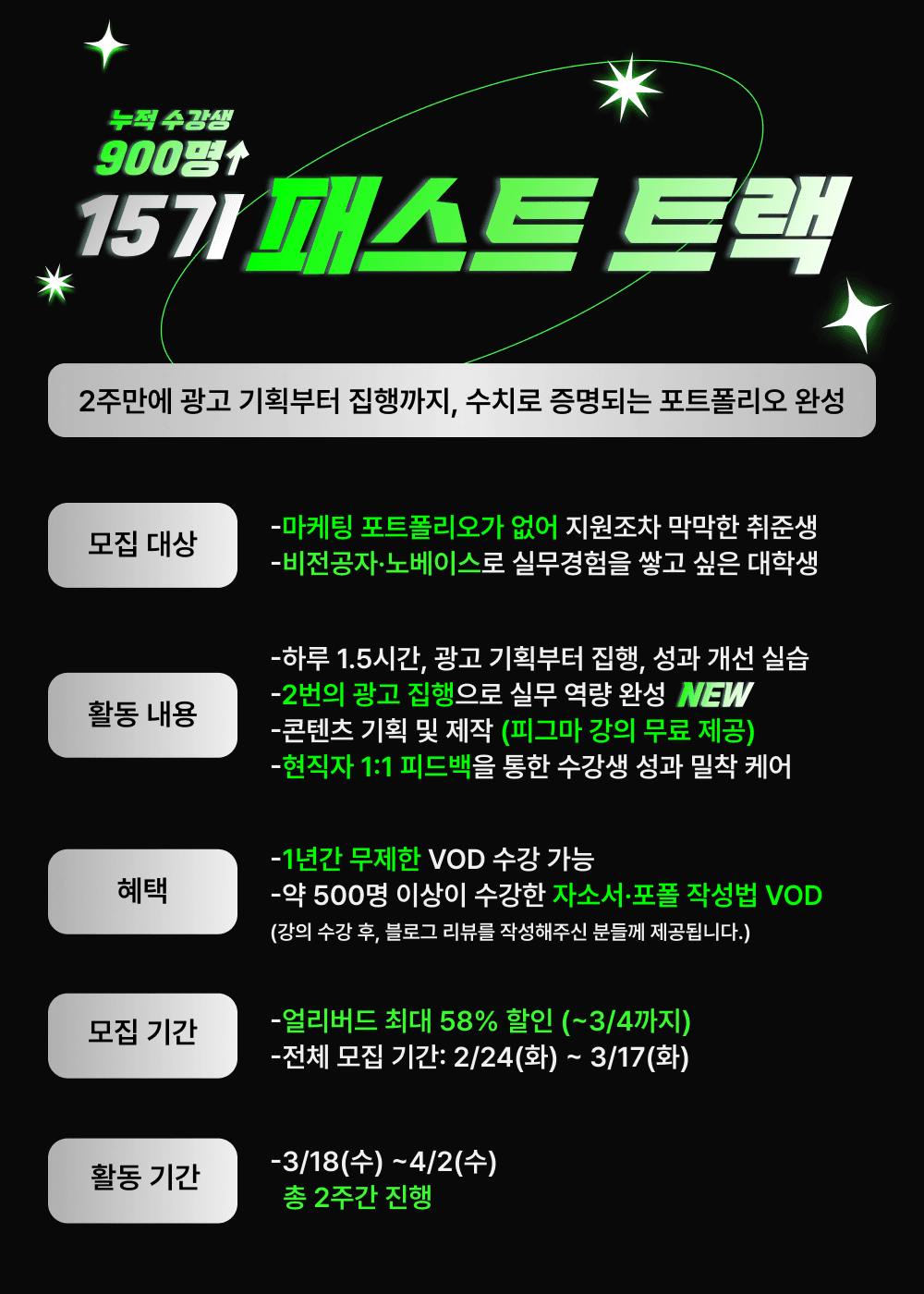 💡참가 대상: 단기간에 광고 집행 실무와 데이터를 확보해 포트폴리오를 완성하고 싶은 분