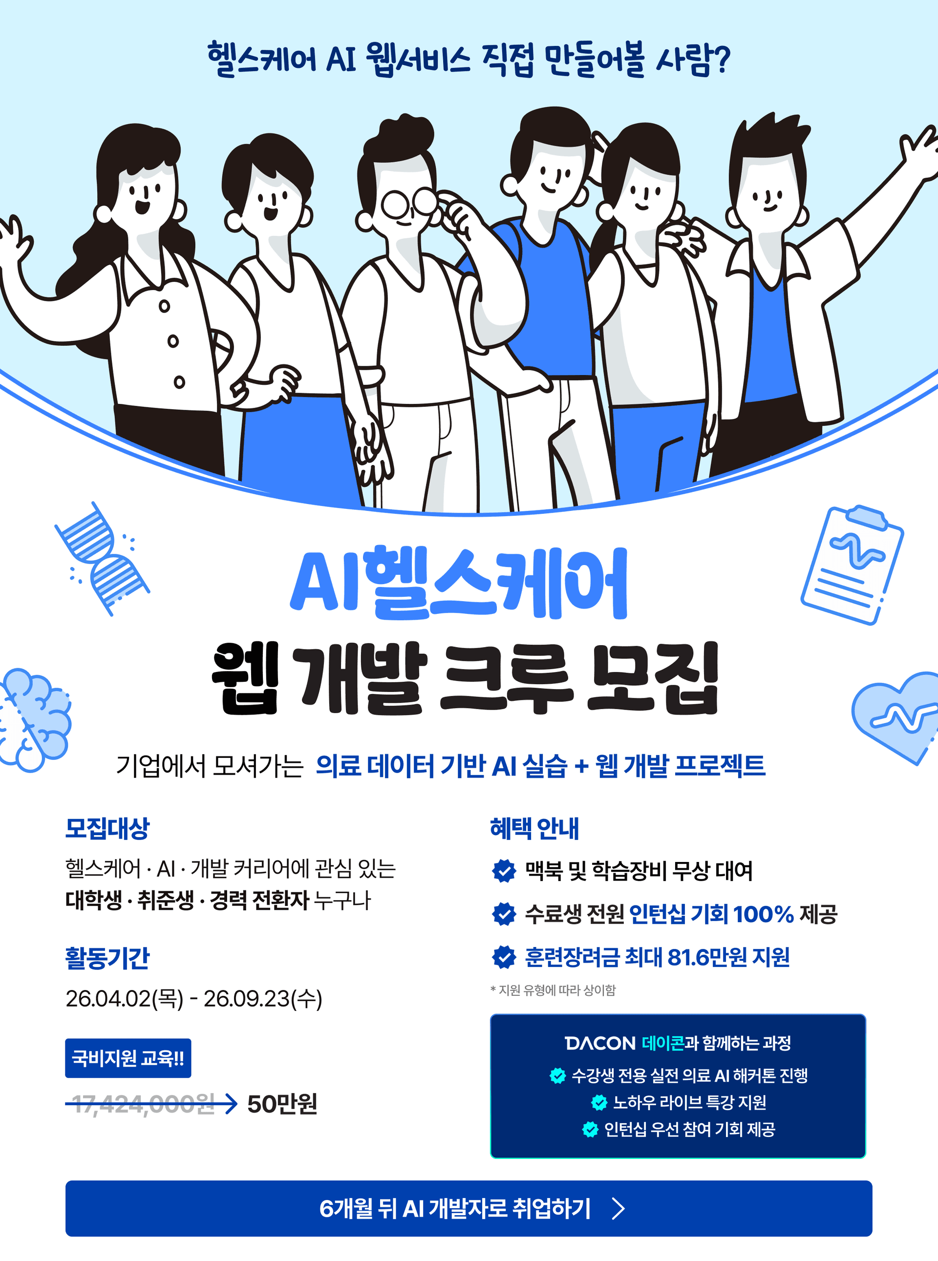 [인턴십기회 100% 보장] 6개월, 개발자 취업경쟁력 완성! <AI 헬스케어 초격차 캠프> 5기 모집!