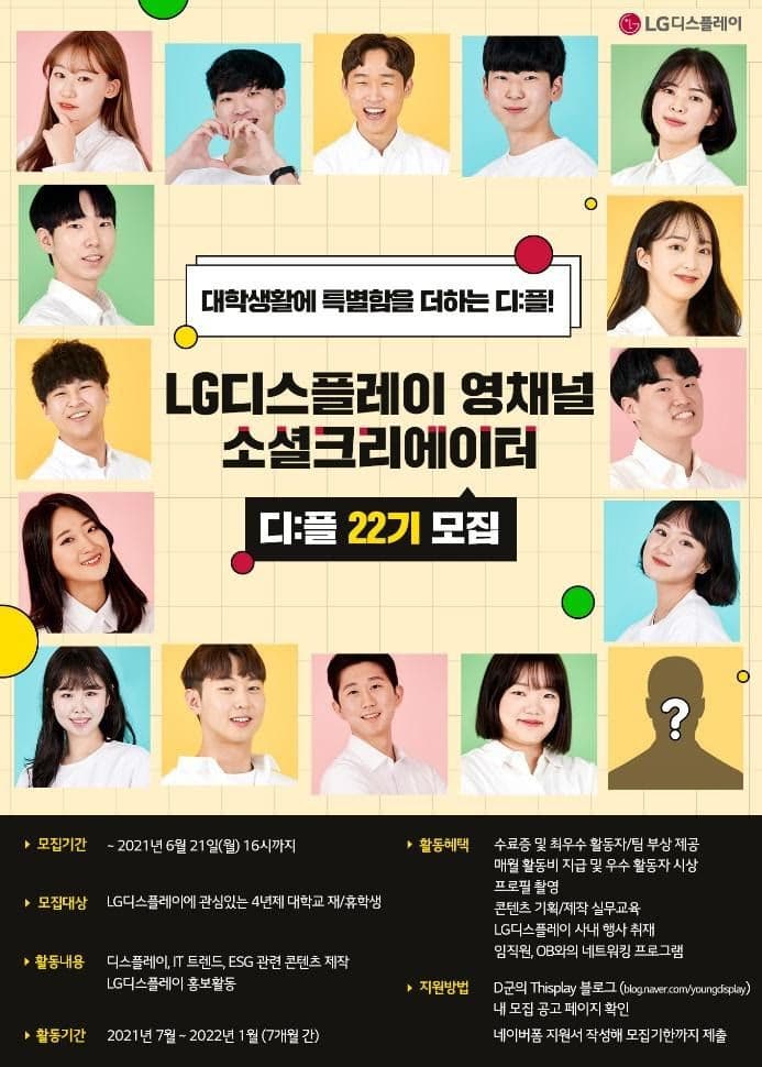 [LG디스플레이 영채널 소셜크리에이터 디:플 22기 모집]