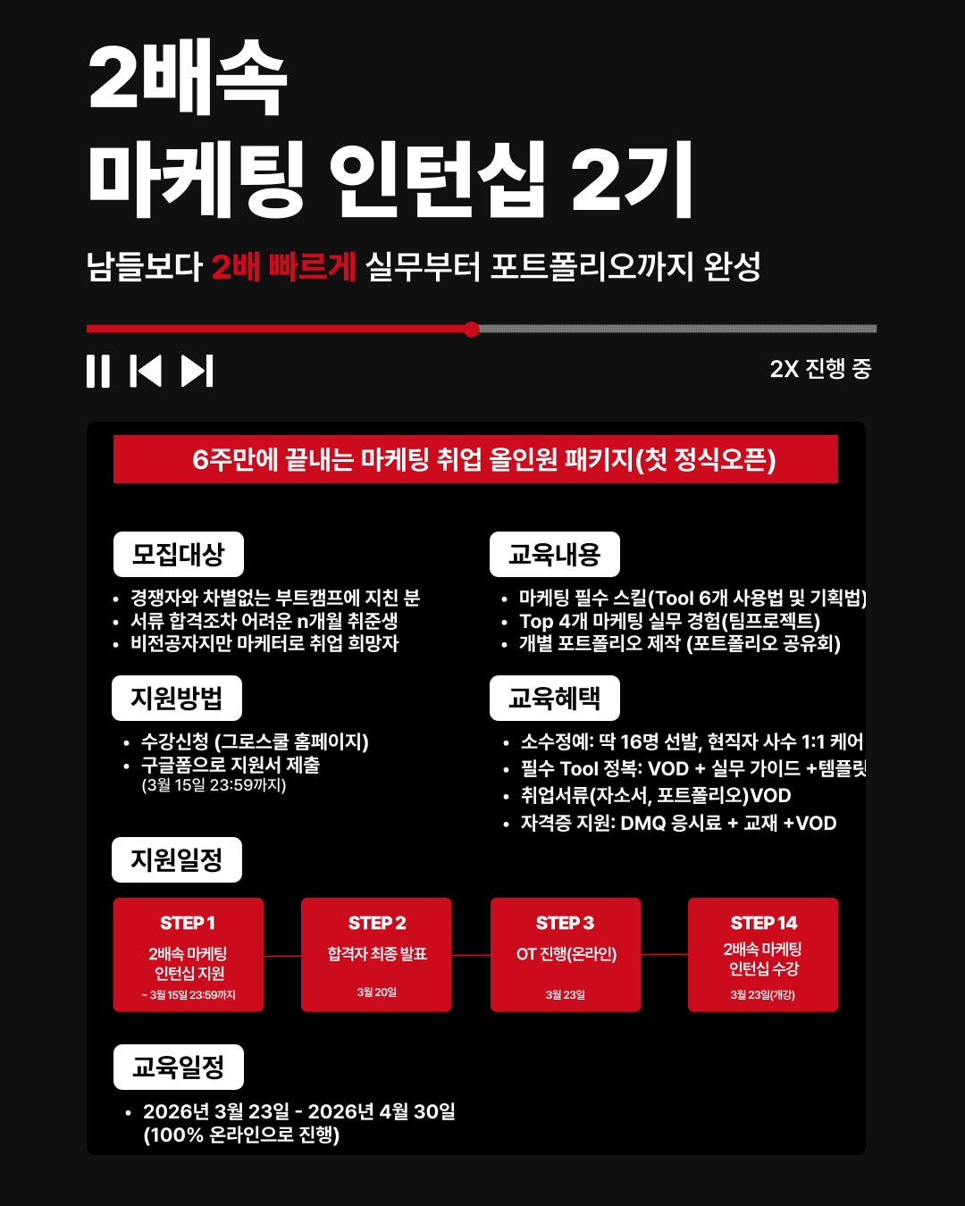 2배속 마케팅 인턴십 1기, 무려 300명 지원했습니다.