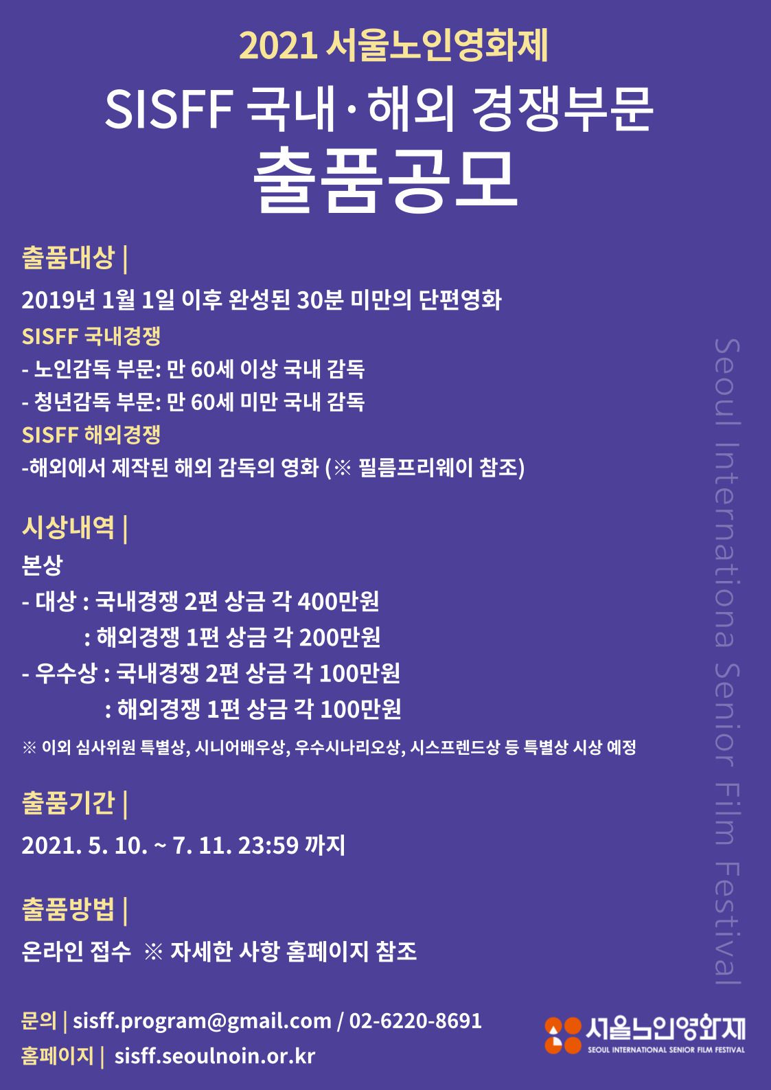 2021 서울노인영화제에서 아래와 같이 출품작 공모를 진행하오니 많은 관심과 참여 부탁드립니다.