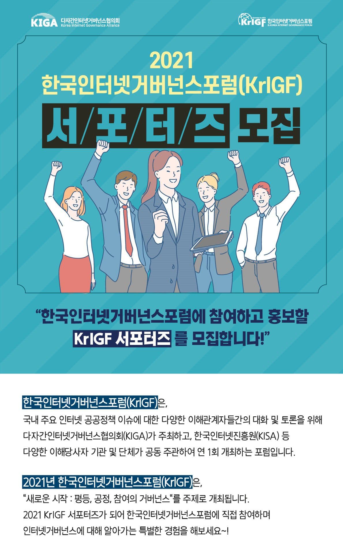 한국 인터넷거버넌스포럼(KrIGF) 서포터즈를 모집하고 있습니다.