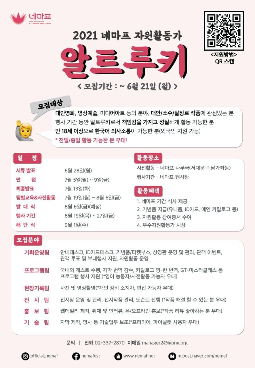 뜨거운 여름, 네마프(NeMaf) 행사현장을 누비며 함께 축제를 만들어 가실 분들의 지원을 기다립니다.