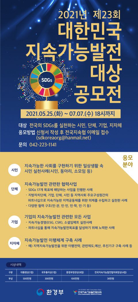 -시상식 : 2021년 9월 30일(목) 대한민국지속가능발전대회 대회장(전주시) 예정