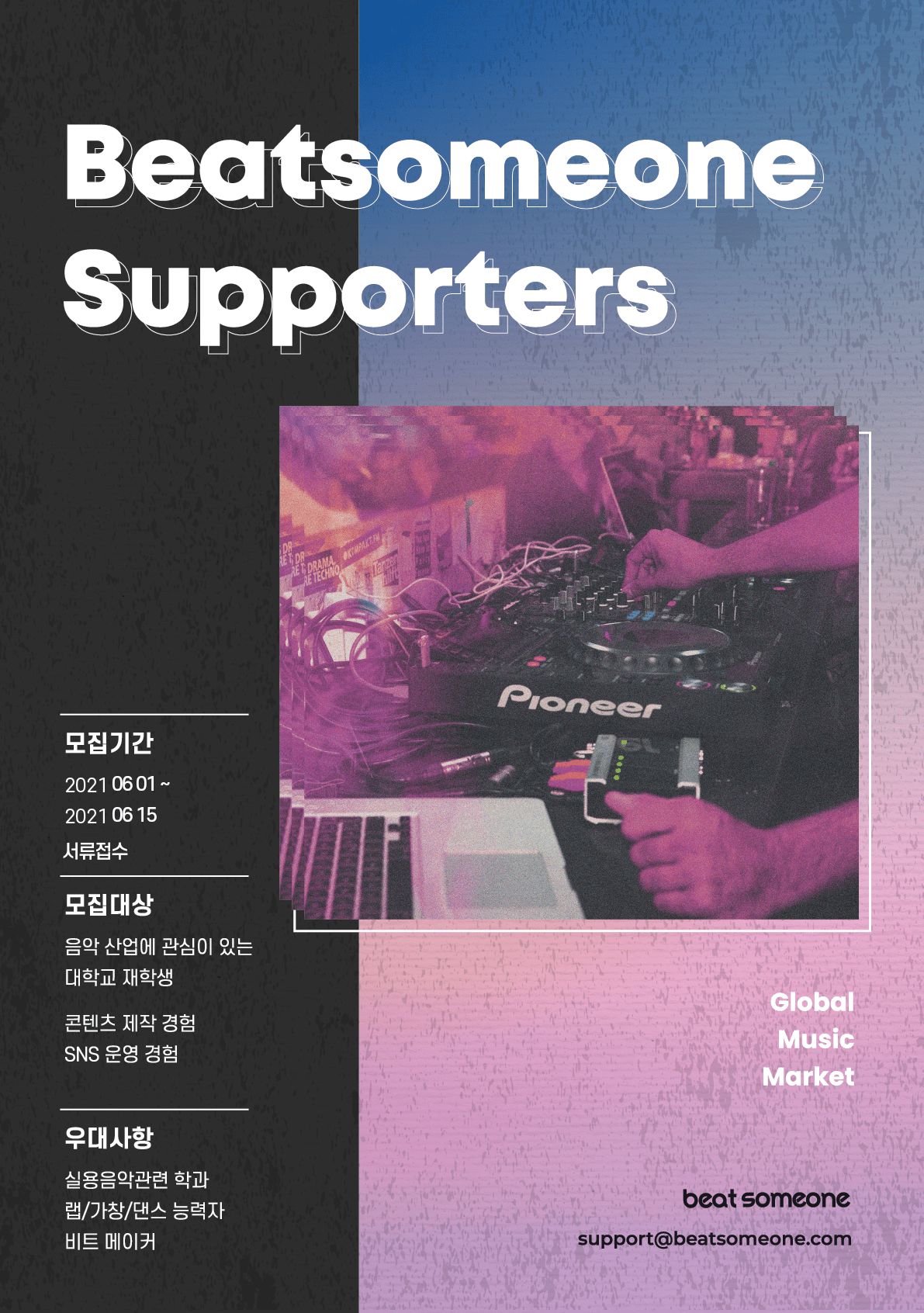 (8) 접수방법 : 서포터즈 지원서 다운로드 후 이메일 제출 support@beatsomeone.com
