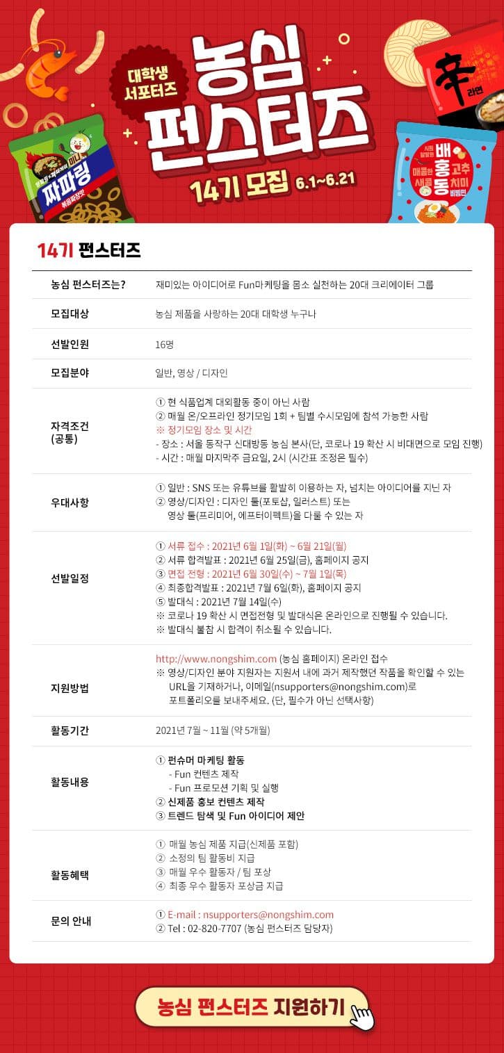 틀에 박히지 않은, 재밌는 대외활동! 농심 펀스터즈 14기를 모집합니다.