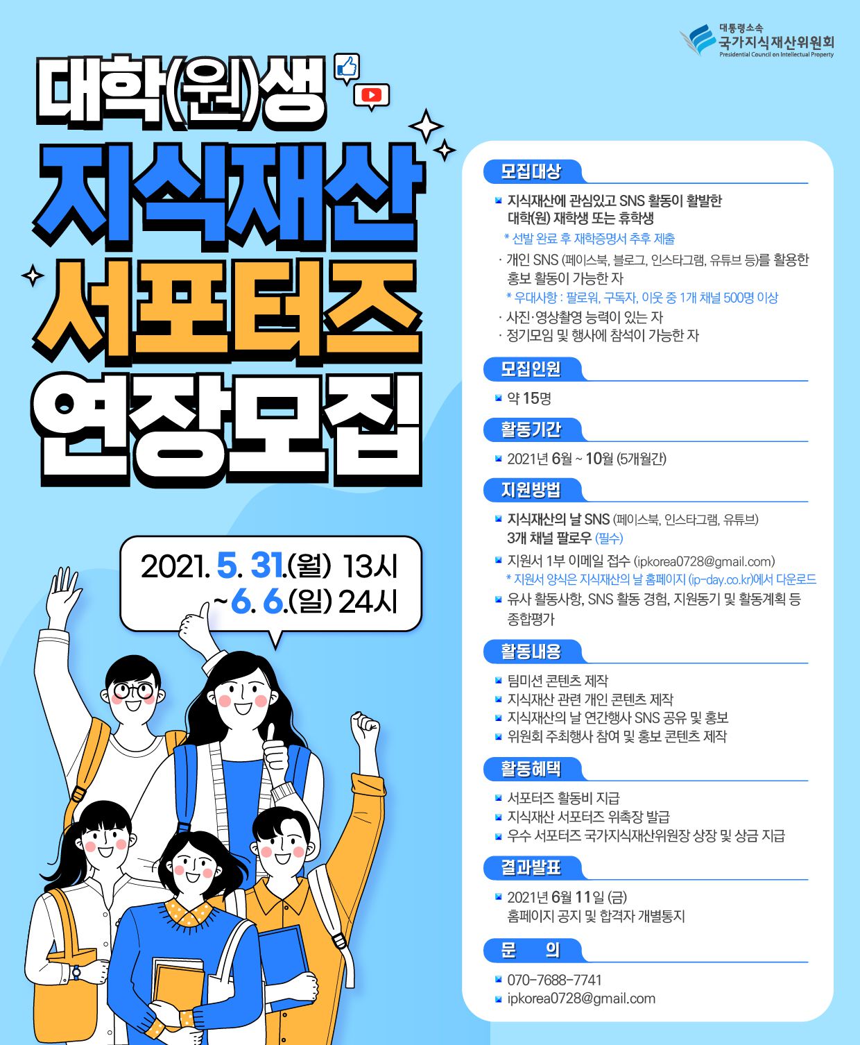 - 지식재산에 관심 있고 SNS 활동이 활발한 대학(원) 재학생 또는 휴학생