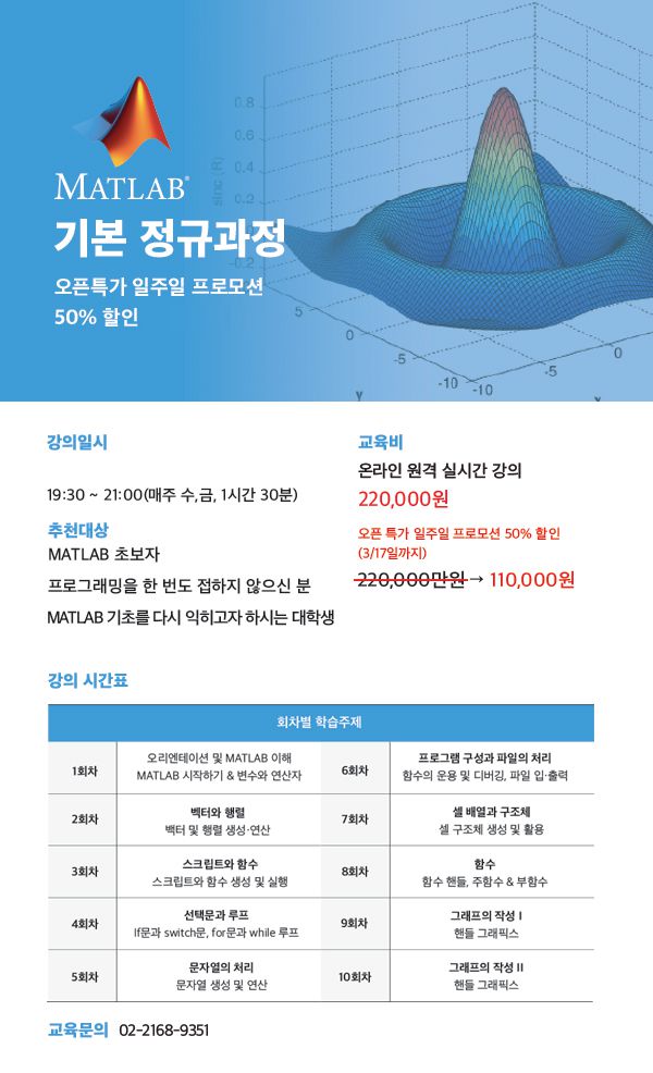 MATLAB 초보인 대학생 및 일반인 분들에게 길잡이가 되어줄 정규과정입니다.