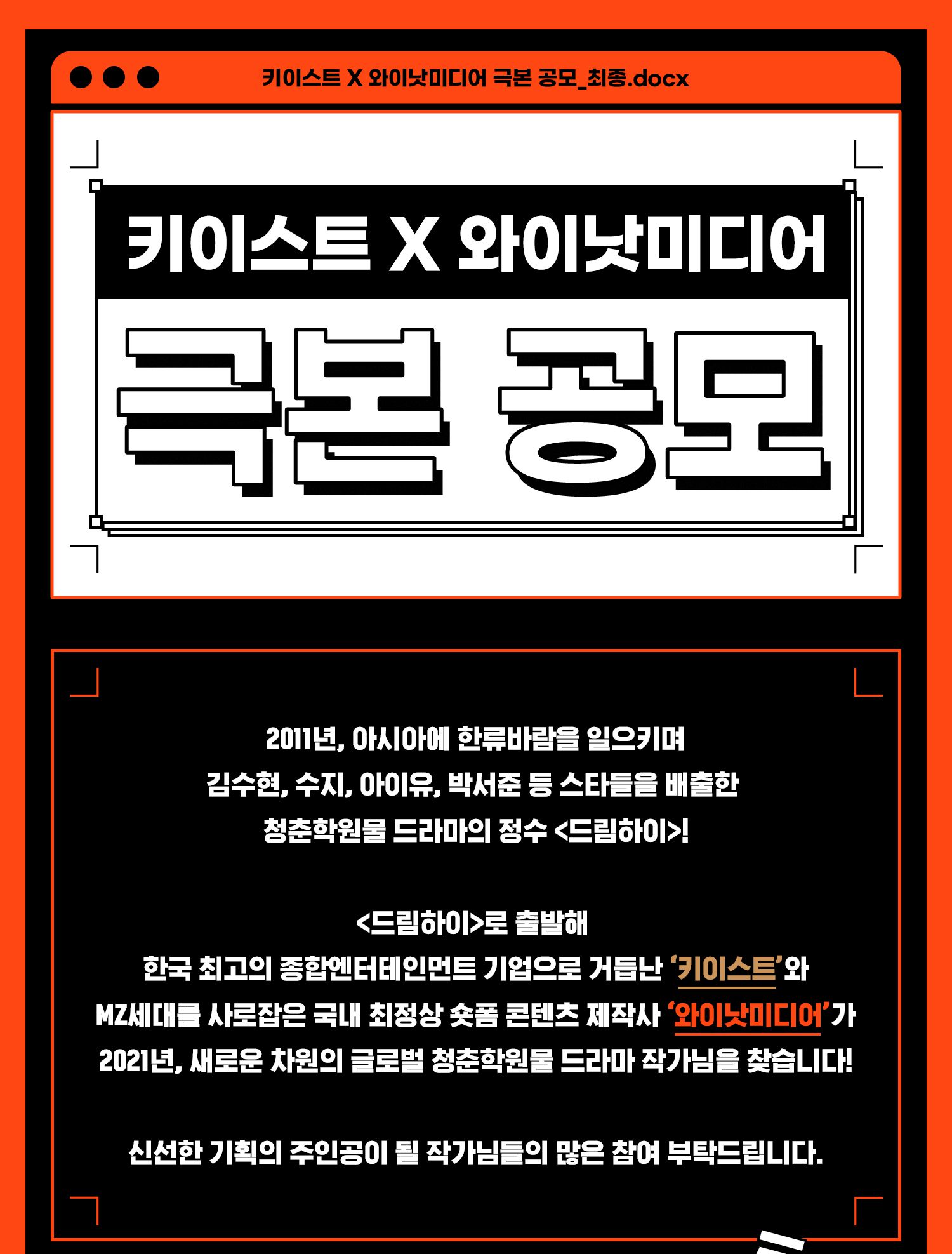 키이스트X와이낫미디어, 2021 드라마 극본 공모전