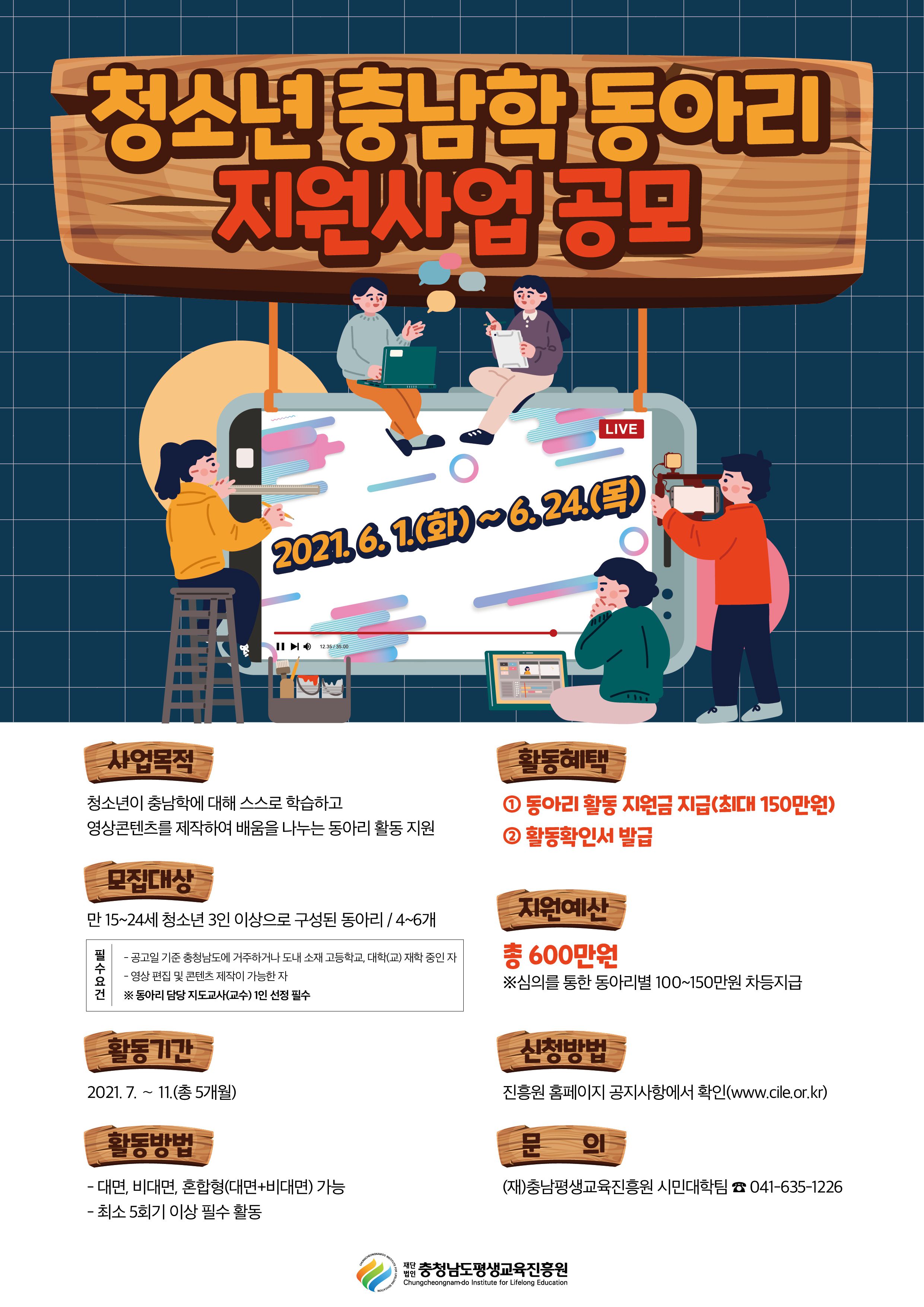 「2021년 청소년 충남학 동아리 지원사업」 공고