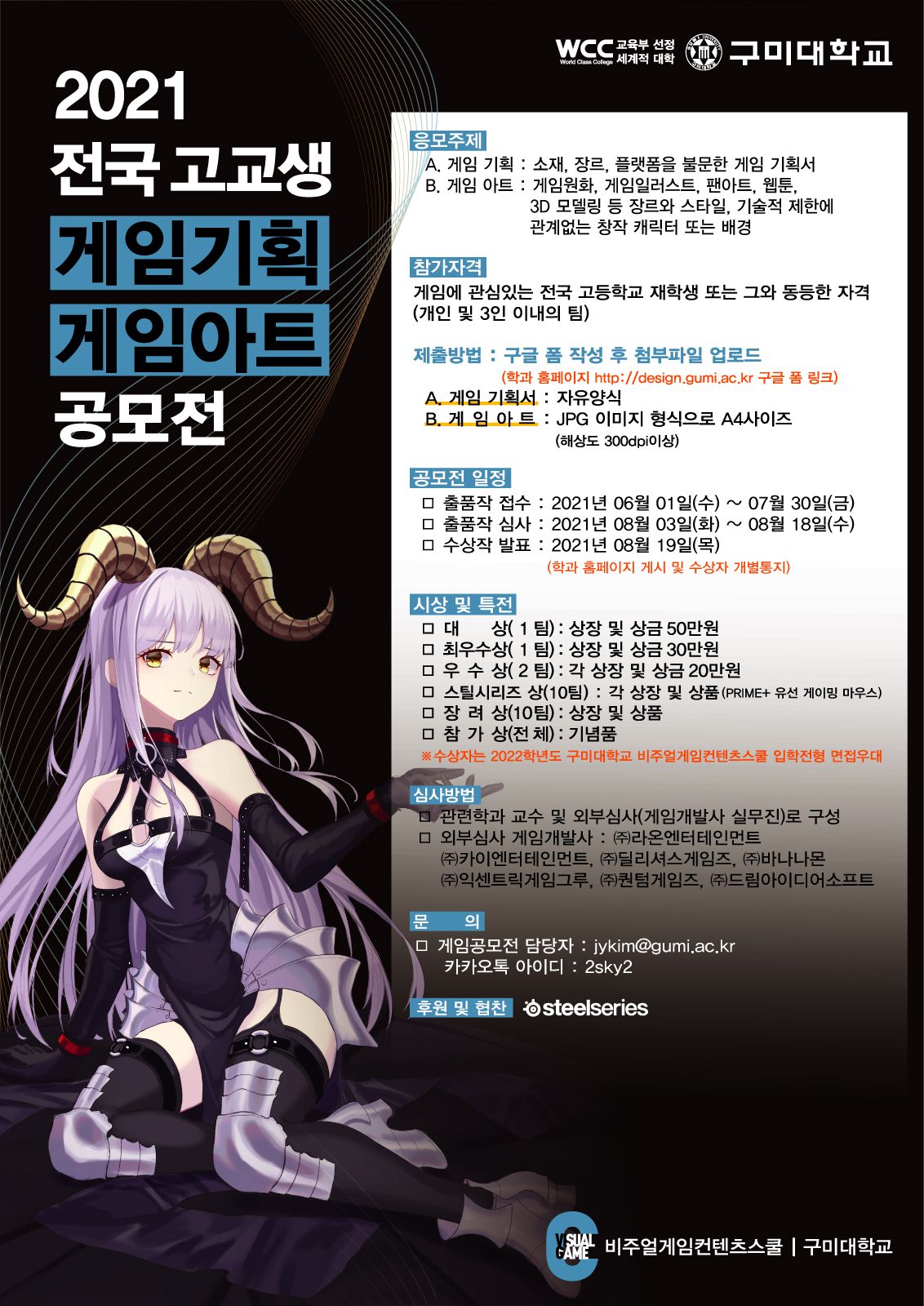 1. 공모전명 : 2021년 구미대학교 전국 고교생 게임기획·게임아트 공모전