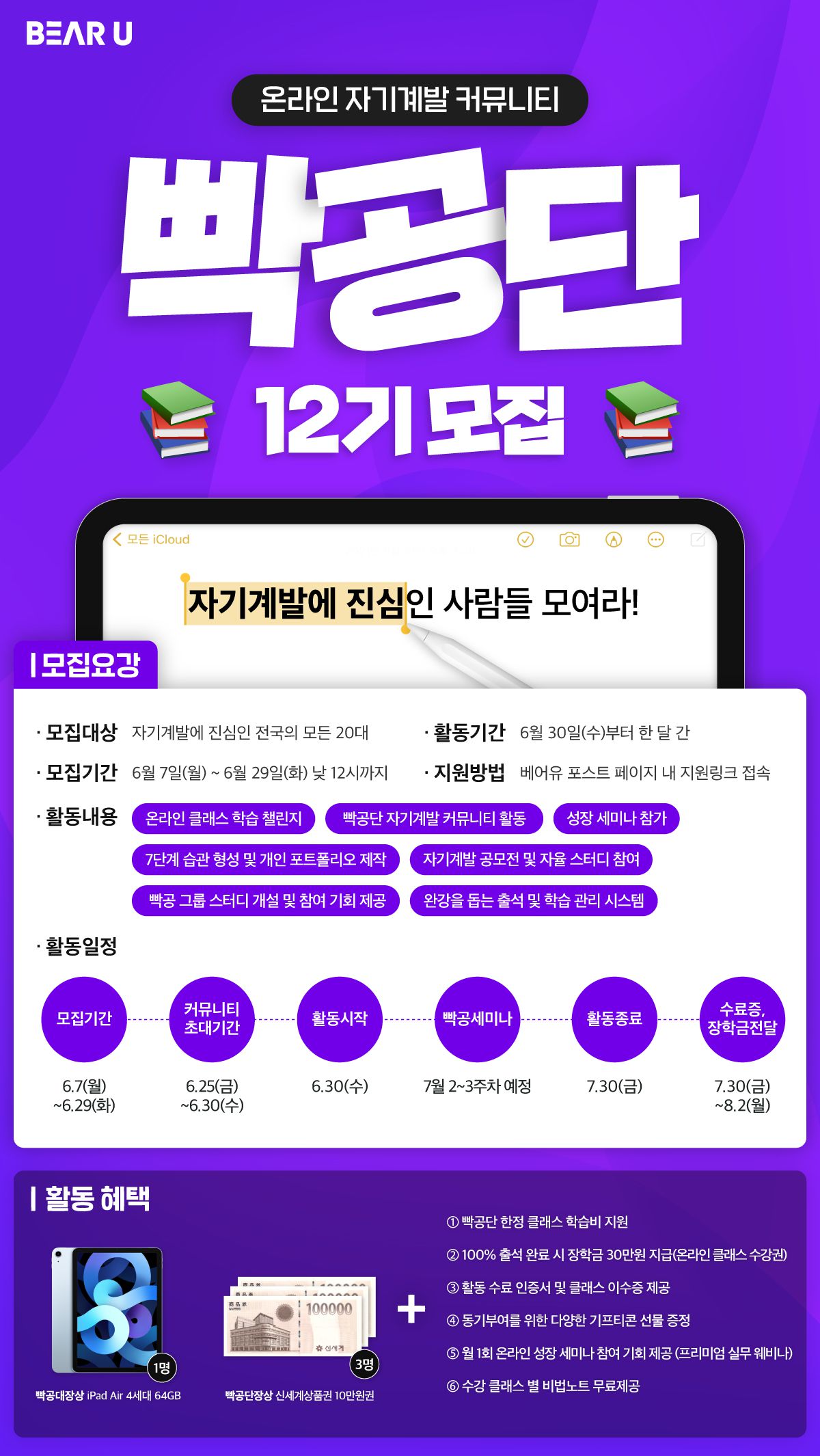 [빡공단 12기] 하루 10분 온라인 자기계발 커뮤니티, 빡공단 모집(~6/29)