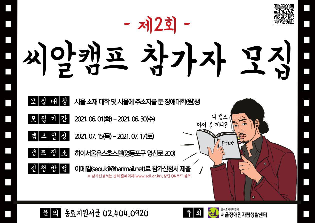 장애에 굴하지 않고 당당하게 지역사회에서 살기를 꿈꾸는 분들은 '2021년 제2회 씨알캠프'에 참여하여 즐겁고 유쾌한 시간을 보냈으면 좋겠습니다. 장애대학(원)생 여러분의 많은 관심과 신청 부탁드립니다.