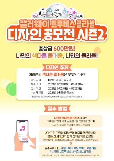 총 600만원의 상금이 걸린 캘러웨이 트루비스 콜라볼 디자인 공모전 시즌2에 도전하세요~!