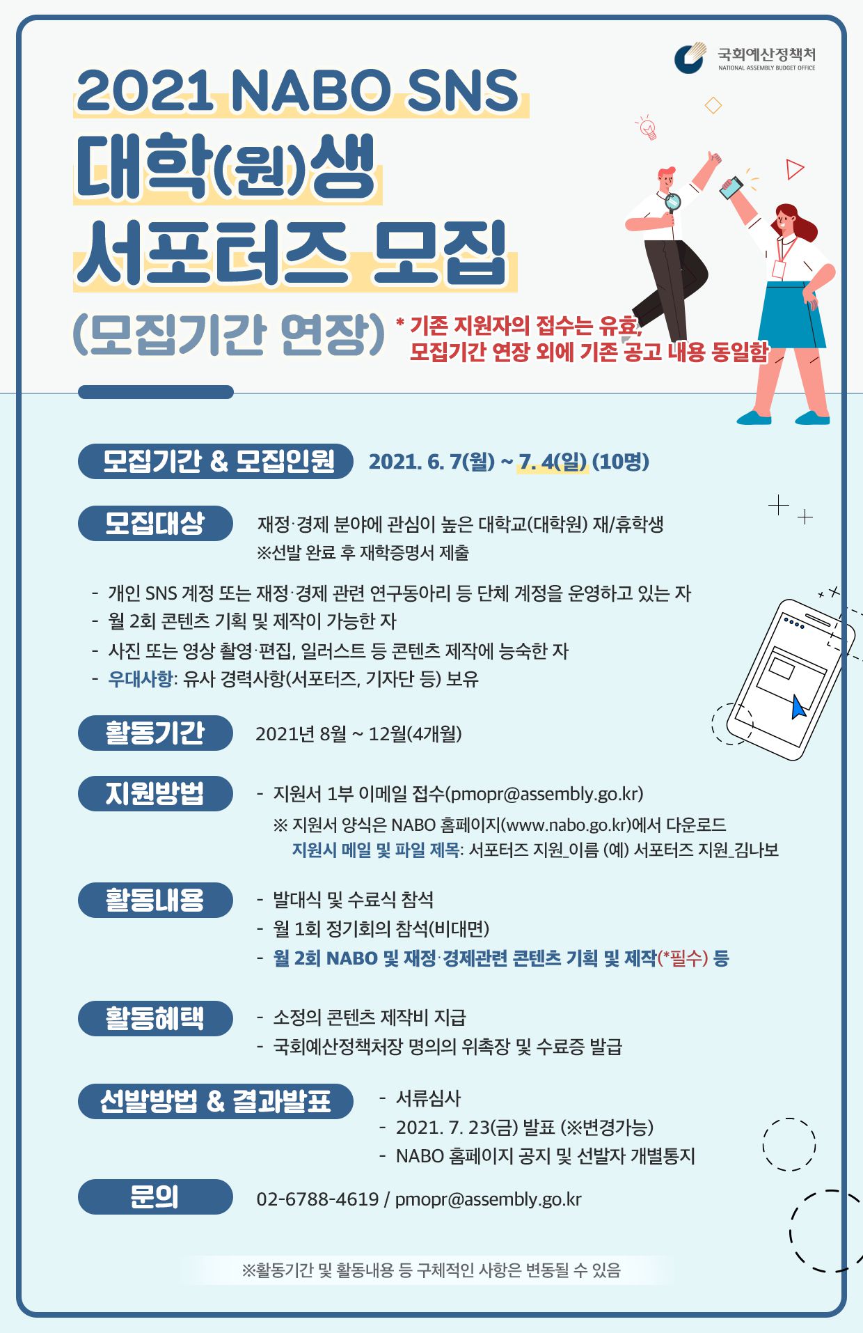 2021 국회예산정책처 SNS 대학(원)생 서포터즈 모집(모집기간 연장)